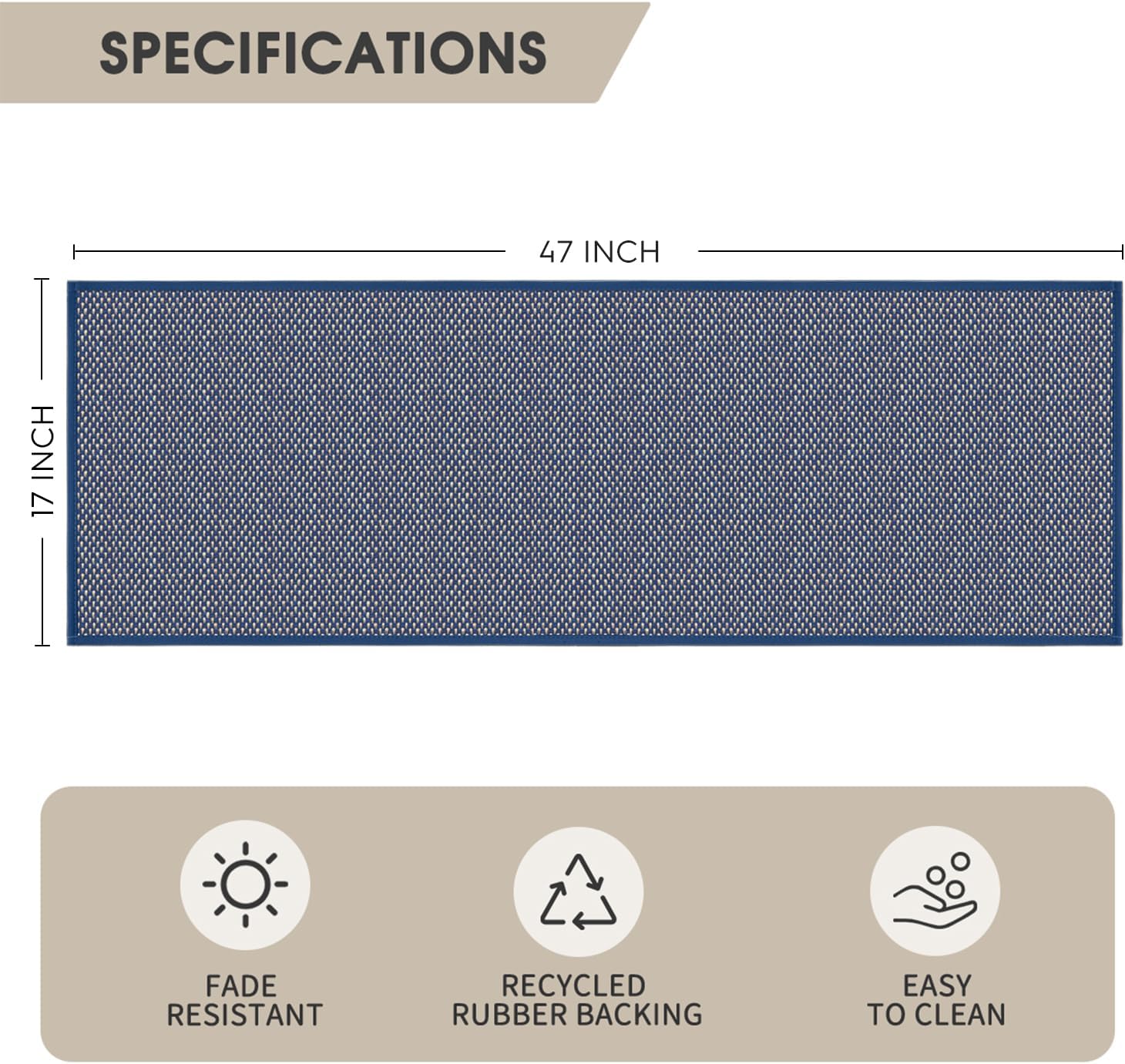 Artoid Mode Washable Non-Slip Rubber Backing Kitchen Rugs Blue Doormat, Absorbent Kitchen Floor Mats in Front of Sink Kitchen Mats for Floor Home Decor 17x47 Inch