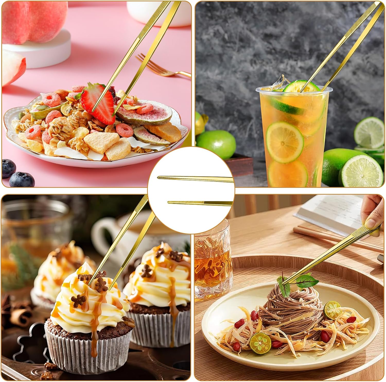GEEKHOM 2 Pcs 12-Inch Gold Kitchen Tweezer Tongs, Stainless Steel Cooking Tweezers with Serrated Tips for Professional Plating, Grill & BBQ