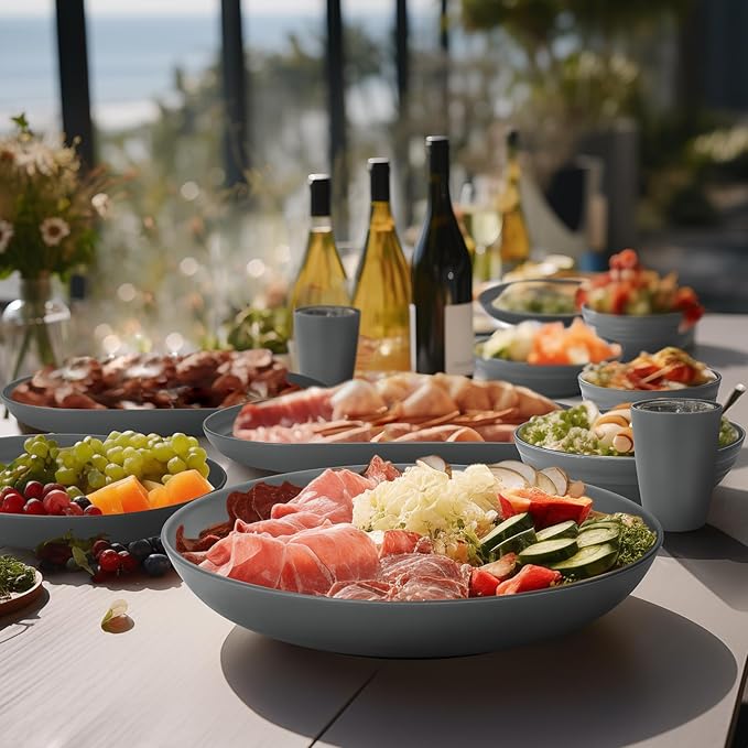 • LIGHTWEIGHT AND NON-BREAKABLE DISHES: Our dinnerware sets are designed to be space-saving with smooth rounded edges. They are all light to pick up and super sturdy, so they won't break even if you drop them on the floor! No more worrying about breaking, chipping or dropping heavy utensils, safe for kids and adults alike