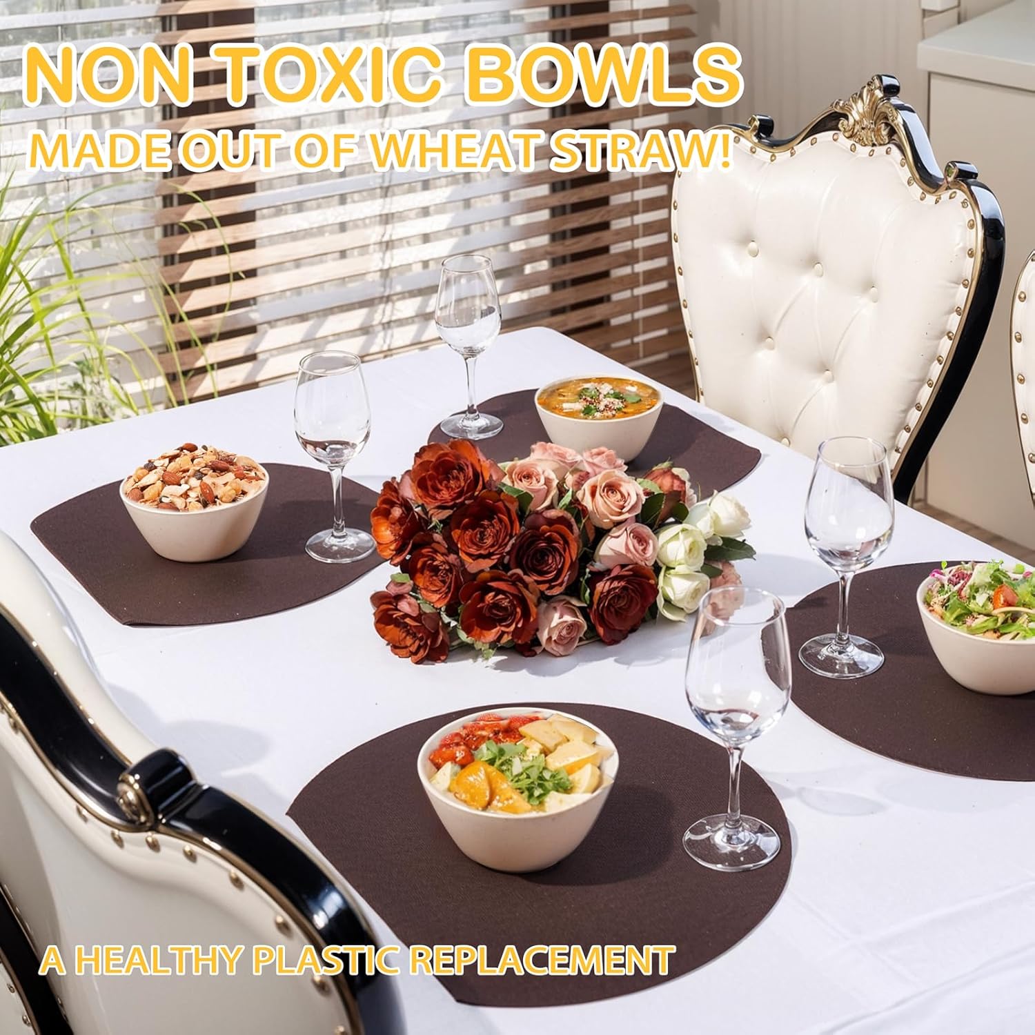 • Charming Wheat Straw Bowls Set of 12:Elevate everyday meals into delightful displays of color and flavor with our unbreakable wheat straw bowls set.Featuring 12 kitchen bowls in beautiful color tones that you'll not only be able to eat from but admire and appreciate.A great gift for friends and families.