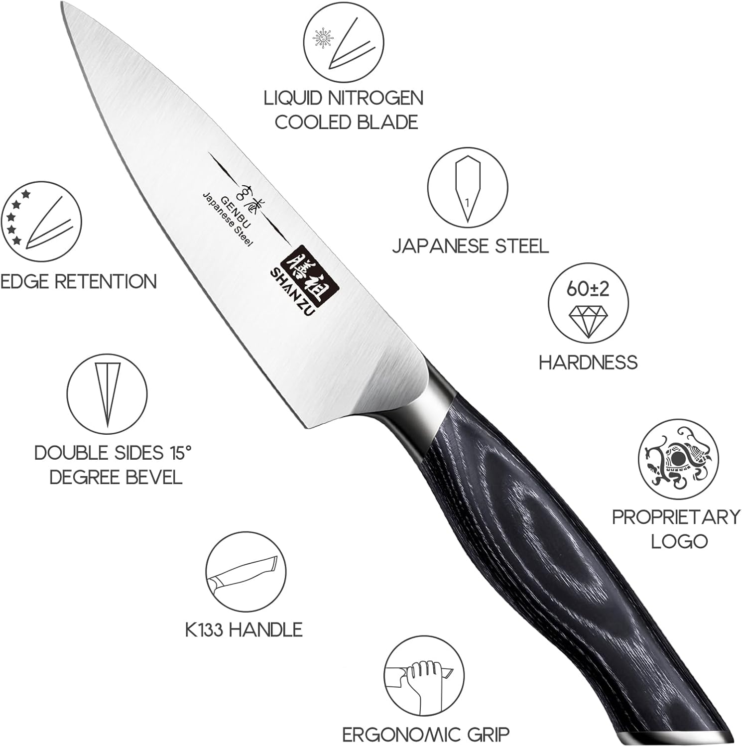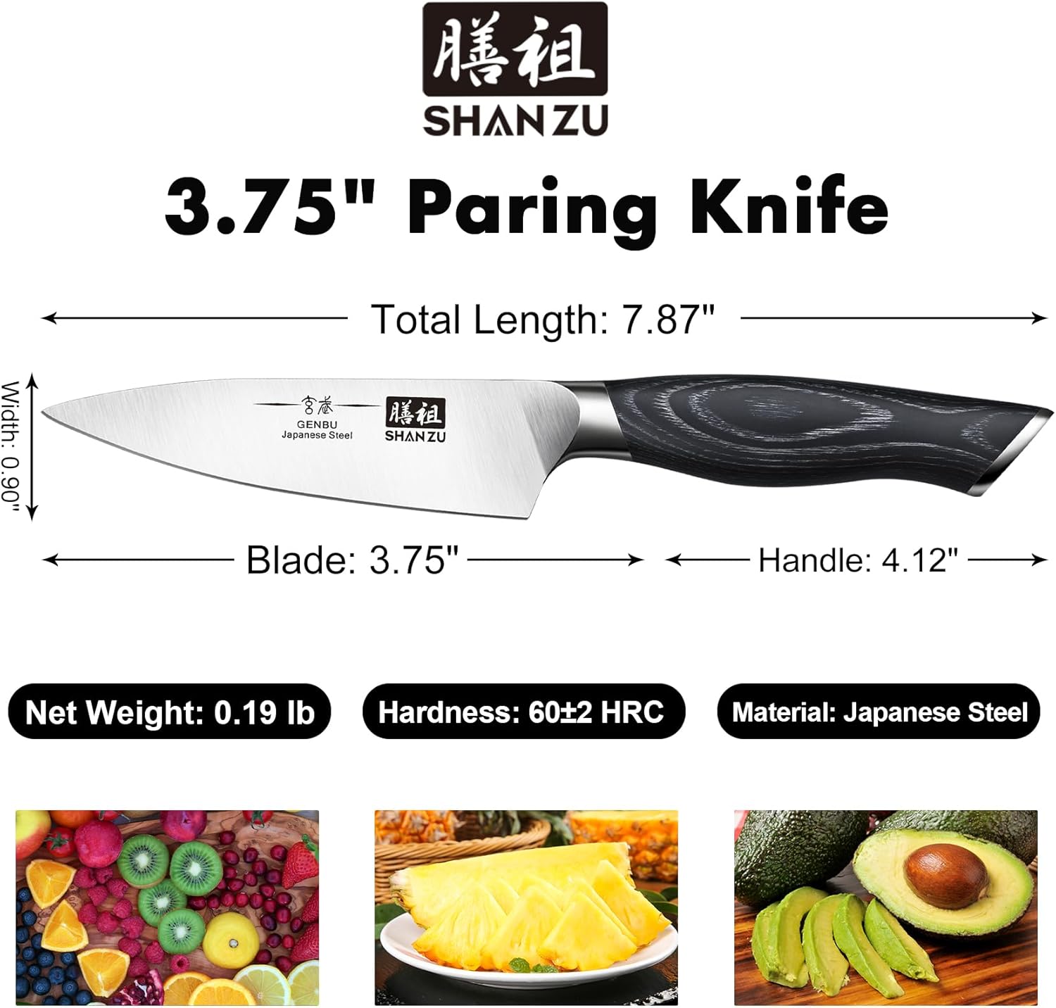 SHAN ZU 3.75 Inch Paring Knife, Japanese Super Steel Professional Fruit Knife, Ultra Sharp Carving Knife with K133 Ergonomic Handle, Black Tortoise Genbu Series