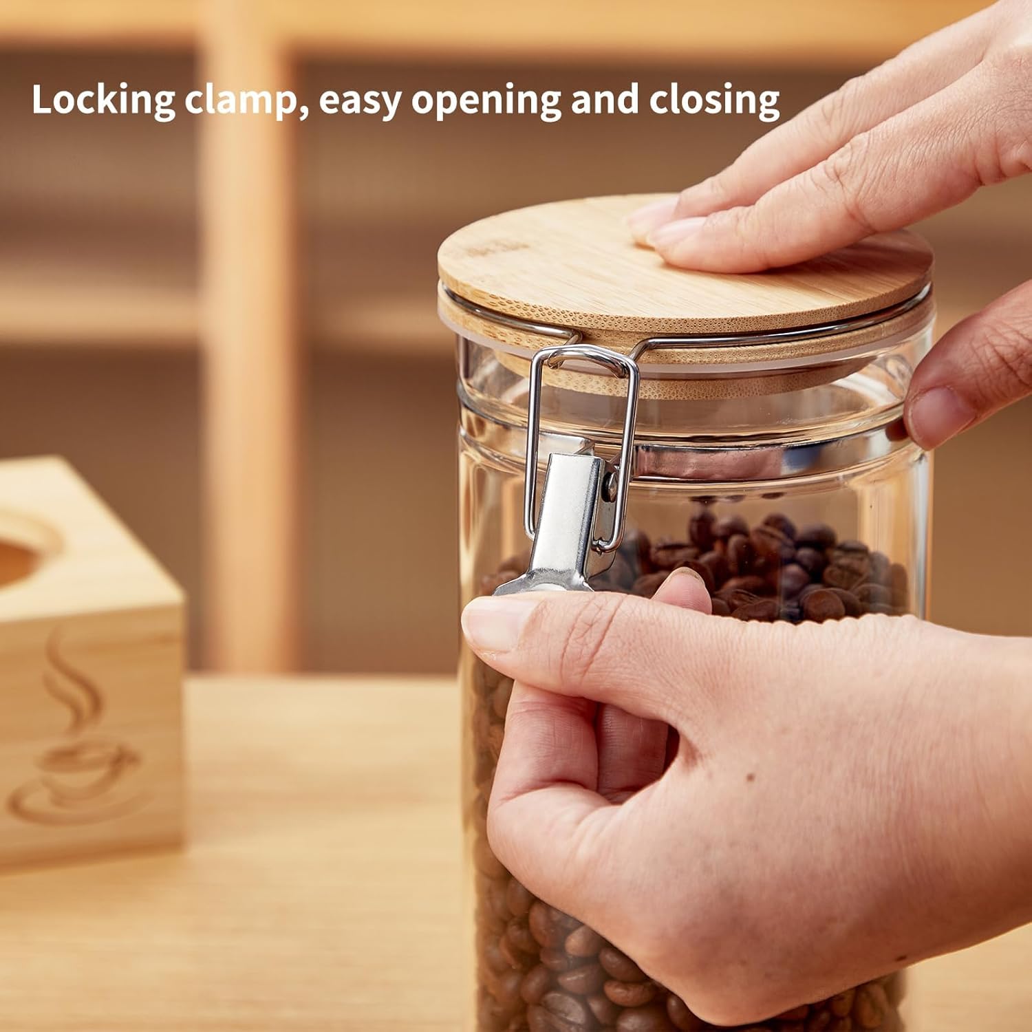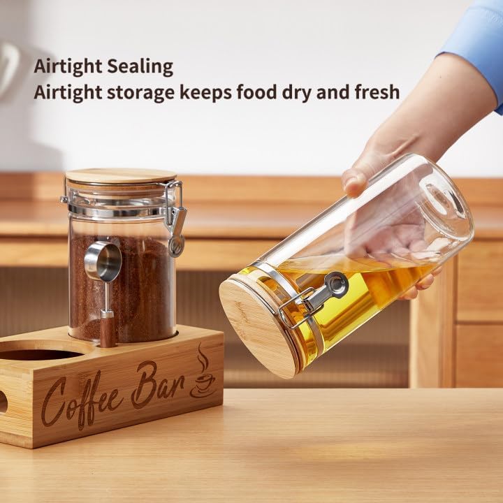 • PREMIUM QUALITY MATERIAL: Made of premium borosilicate glass with a 50 fluid ounces. capacity, these coffee jar are thicker and more durable for safe long-term food storage. Clear glass design is easy to view the contents inside. Designed with a large opening for easy access to food.