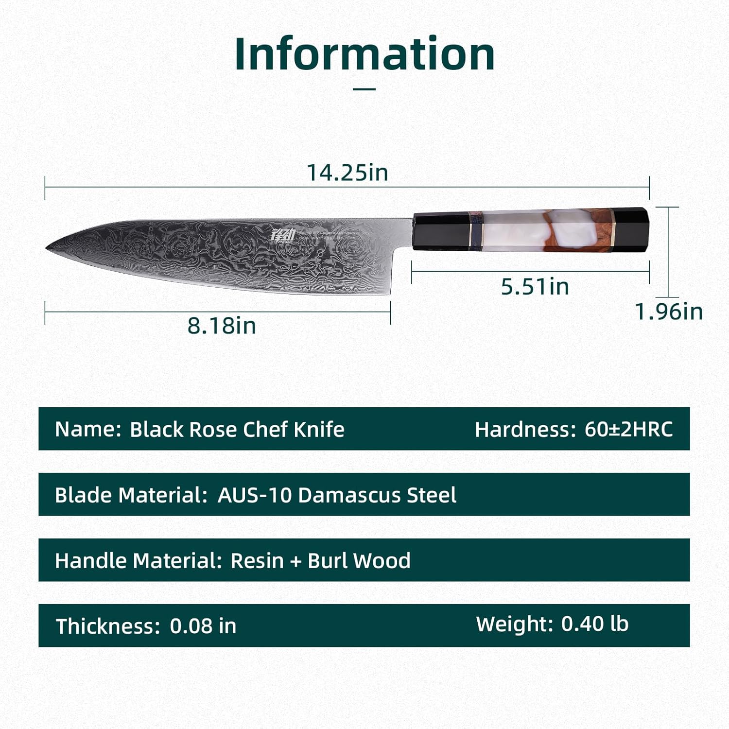 • [Elegant Looking] Exquisite rose pattern on the blade gives a stunning touch to your kitchen decor while impressing your guests with your culinary skills.