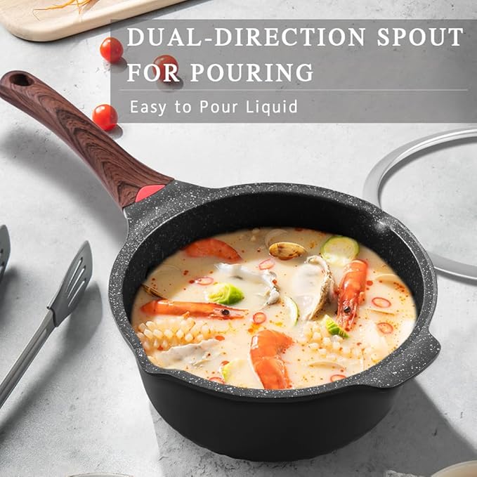 • 【4QT Non-Stick Milk Pot】Features PFOA/PFOS-free granite coating designed to require less oil with reduced smoke production. Includes lid and easy-release coating, suitable for heating milk, making porridge or preparing sauces.