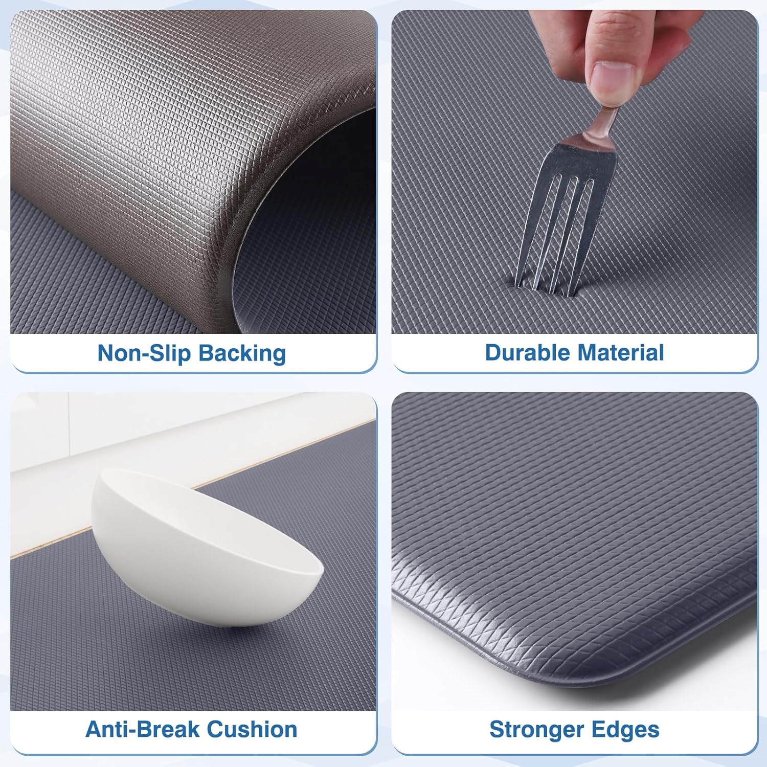 • Non-Slip Design: This standing mat features non-slip backing to keep it securely in place on various surfaces like tile, wood, ceramic, and marble. For optimal safety, always place the kitchen mat on dry, flat surfaces