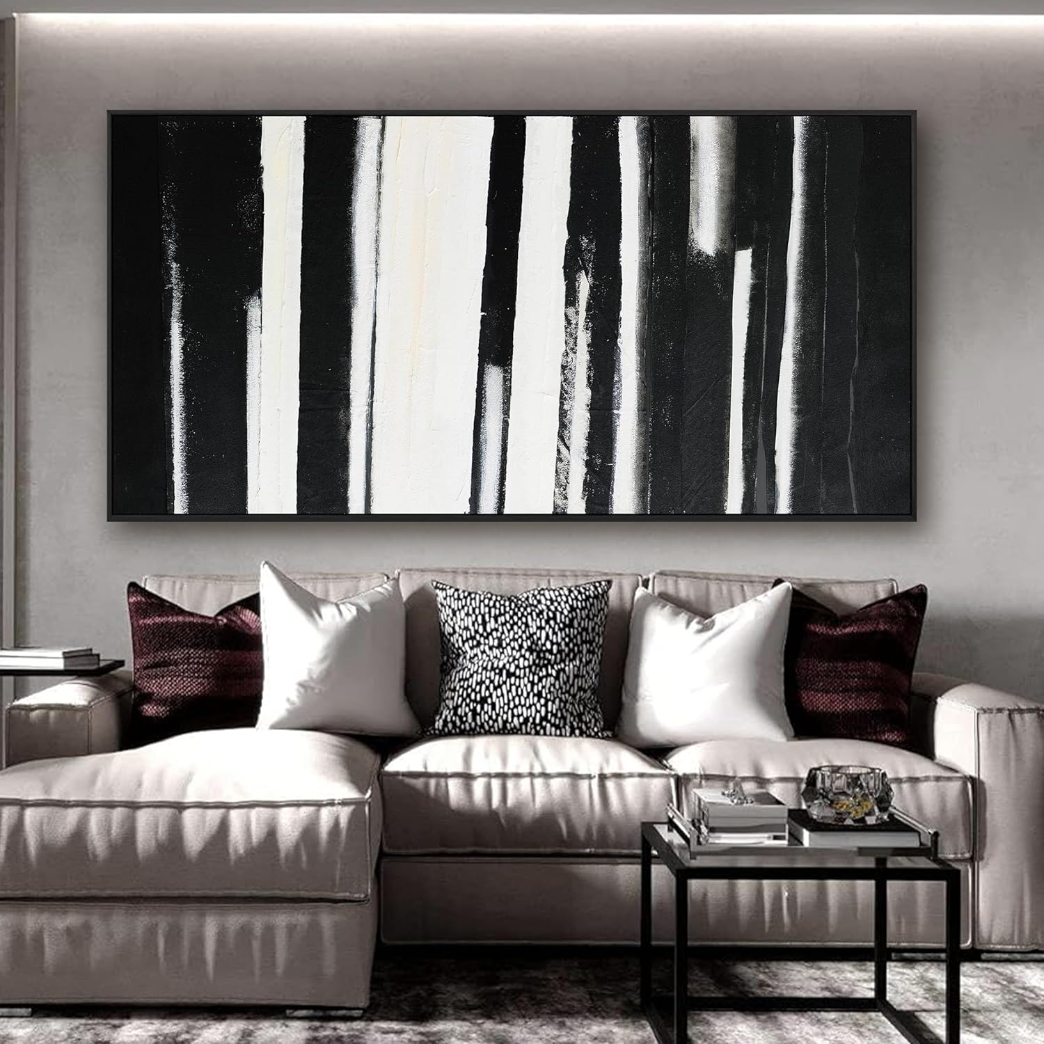 Framed Abstract Canvas Wall Art Decor Large Home Decor Wall Art Prints Black and White Minimalist Stripes Framed Artwork Modern paintings Wall Decorations for Living Room Wall Bedroom Kitchen Office Decor 29"×58"