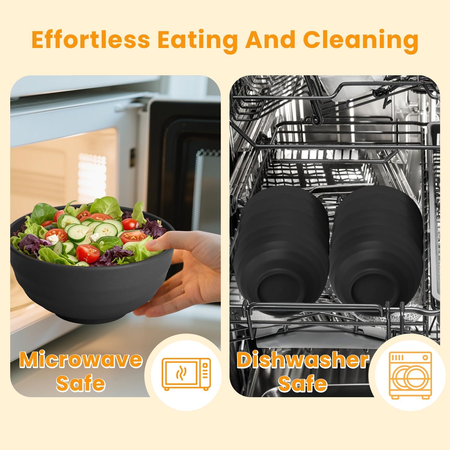 Homienly 60 OZ Salad Bowls,Large Soup Bowls Set of 8,Wheat Straw Bowl Sets,Unbreakable Large Serving Bowls,Big Cereal Bowl for Kitchen, Salad, Soup, Microwave and Dishwasher Safe Bowl - Black