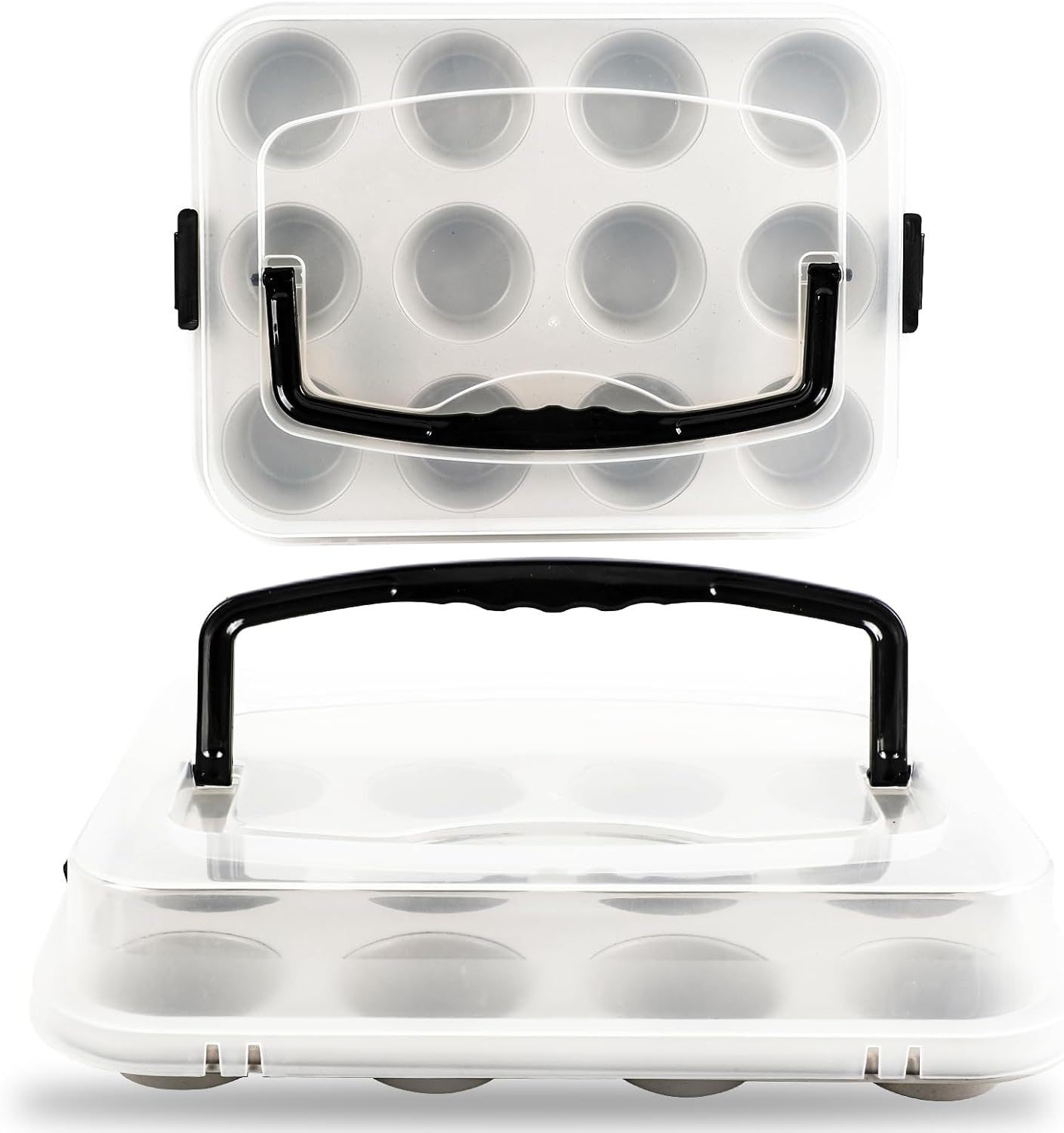 • Easy to Carry: This 2-pack 12-cup muffin pan has a convenient carry lid, BPA-free clear lid and safety lock clips to keep baked goods fresh and make shipping hassle-free. Perfect for picnicking, storing in the pantry and carrying around.