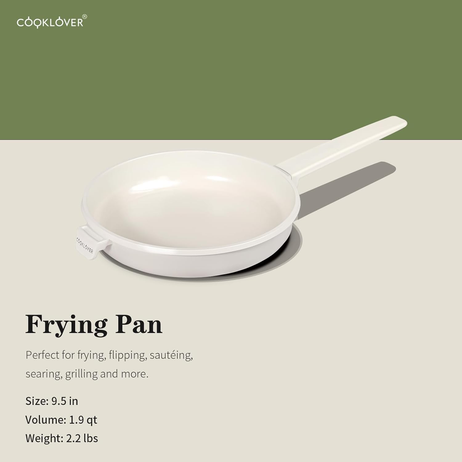 COOKLOVER Nonstick Ceramic Fry Pan, Non-Toxic, PTFE&PFOA Free, Induction Compatible Egg Skillet Frying Pan with Heat Resistant Handle, 9.5 Inch – Cream White