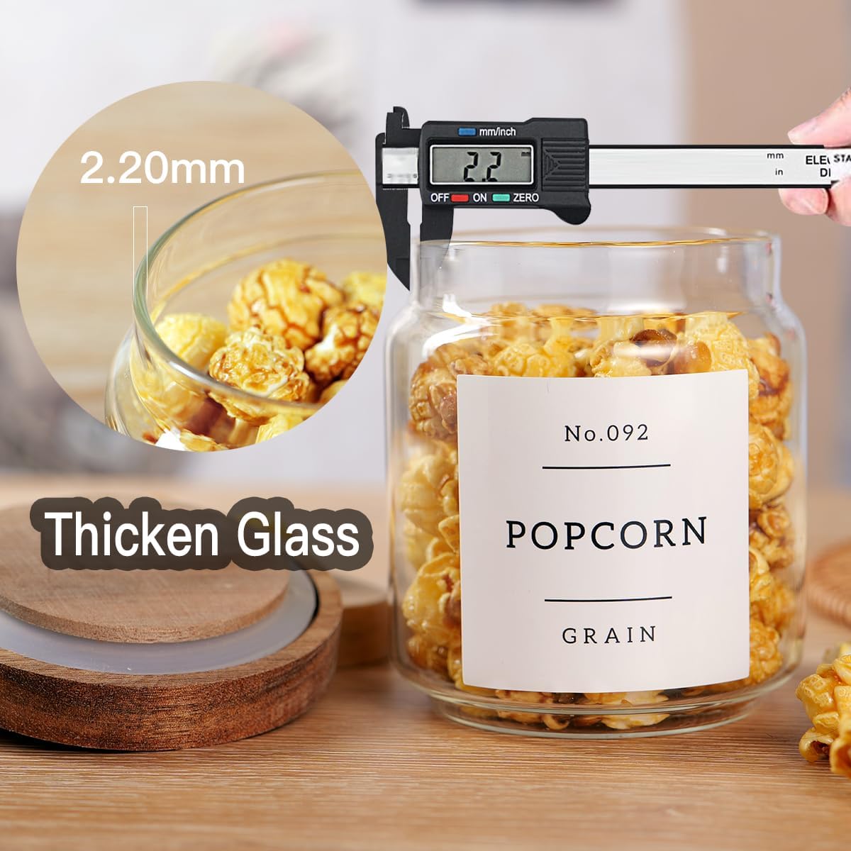 6 Set Glass Pantry Storage Jars with Acacia Airtight Lid - 15oz Thicken Glass Kitchen Canisters with 132 Pantry Labels - Clear Glass Food Storage Containers with Wood Lid for Tea,Sugar,Spice,herbs