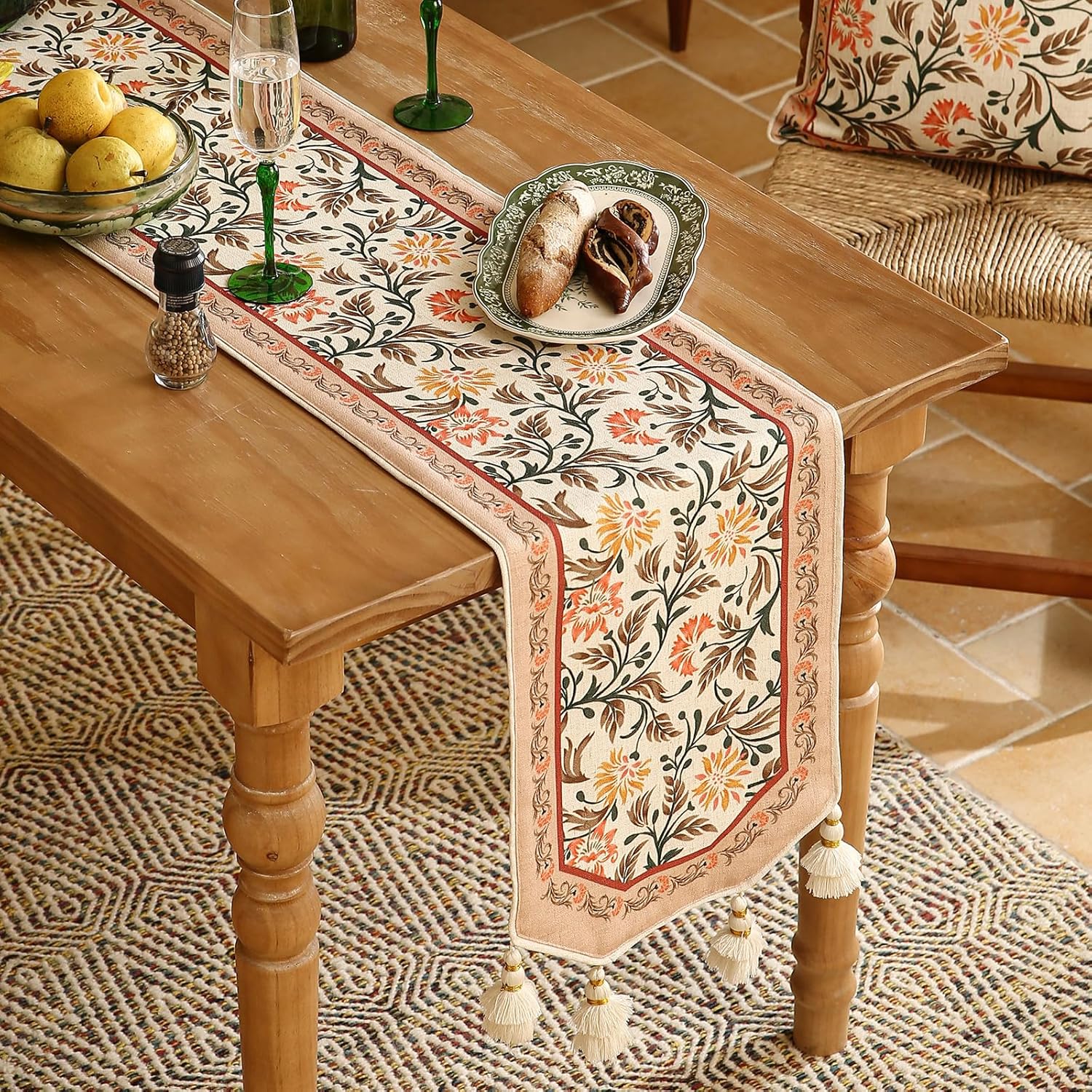 • Unique Design:Each table runner features patterns hand-drawn by our designers,showcasing exquisite details and rich textures for stunning visual appeal.The meticulous stitching ensures a smooth,wrinkle-resistant,and durable finish.With its fresh,rustic yet elegant style,it adds vibrancy and charm to your home decor