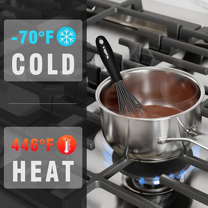 Walfos Silicone Whisk,7+9in Mini Whisk,BPA Free,Small Whisks for Non-Scratch,Heat Resistant (450°F) Nice for stirring individual eggs and mixing small amounts of powder and sauce.Dishwasher Safe.Black