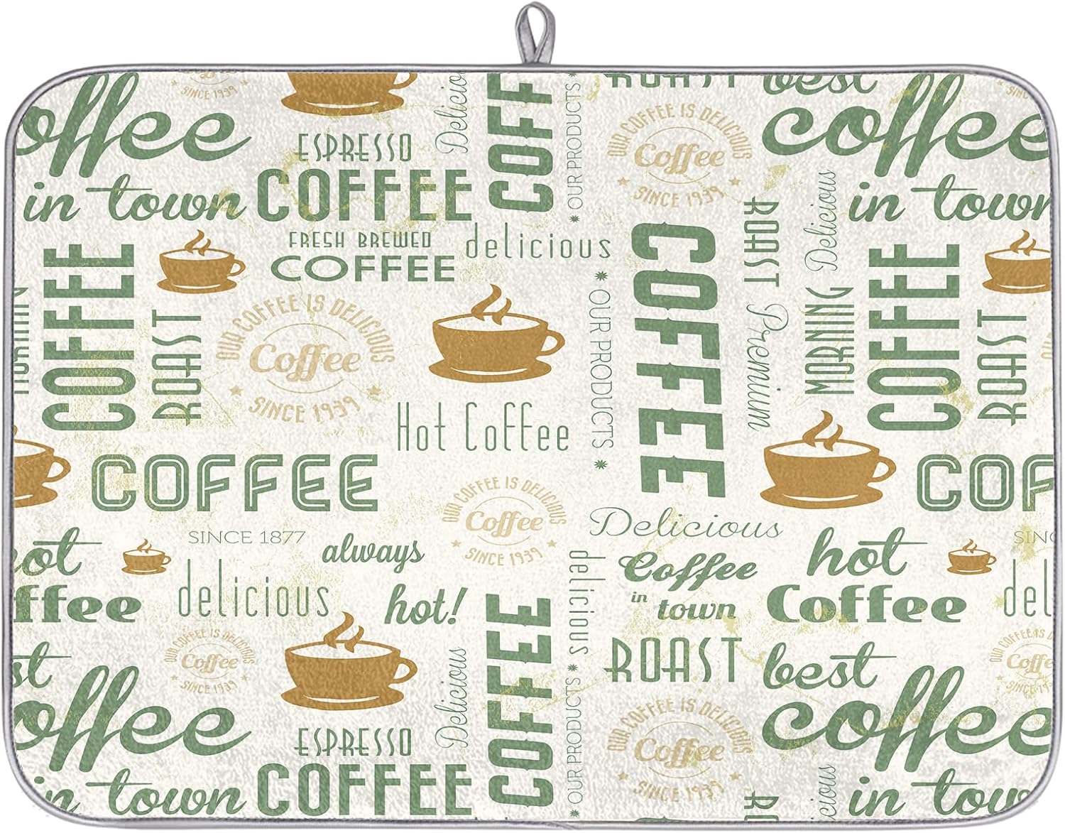 Hexteria Dish Drying Mat for Kitchen Counter, Absorbent Coffee Bar Mat, Dish Drainer Rack Mats for Kitchen Counter, Green