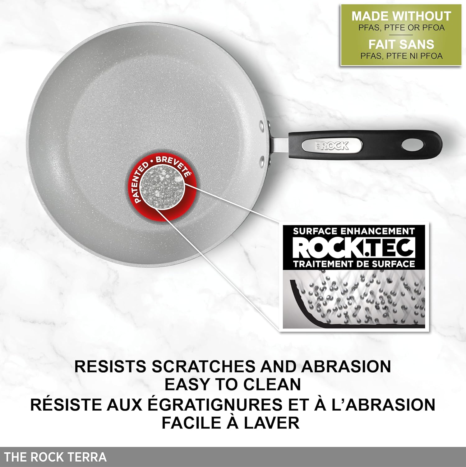 • Enhanced with Rock.Tec technology, the pan's surface is 3 times more durable than traditional non-stick, resisting scratches and abrasion.