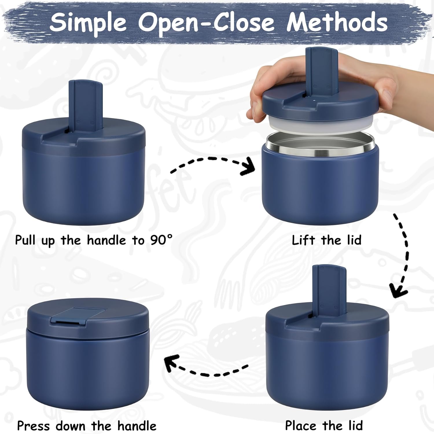 • 100% Leak Proof:Our food thermo comes with a thick silicone gasket. It is full sealed. So you can toss it in your bag or insulation bag without worrying about spills. Wide mouth design are also very easy to clean.