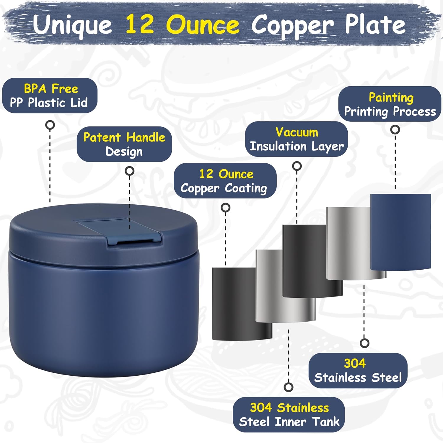 • Keep Food Warm and Cold:Our soup thermo with the insulated 18/8 (SUS304) stainless steel interior with vacuum seal.This will keep your little kids meals warm or cool for 5+ hours. Capacity: 12oz(350ml). Small size and light weight, suitable for home, work or picnic etc.