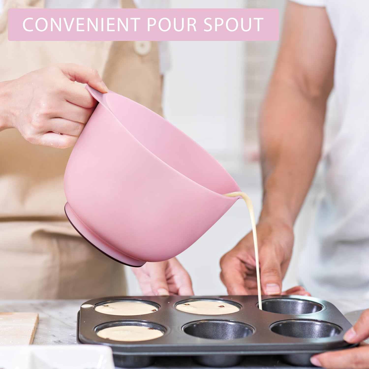 • [Non-slip & non-stinky] -The rubber layer at the base will keep these batter bowls from skidding or slipping during mixing. Ingredients won’t stick with the bowl’s non-stick surface, making lengthy mixing less tiring.