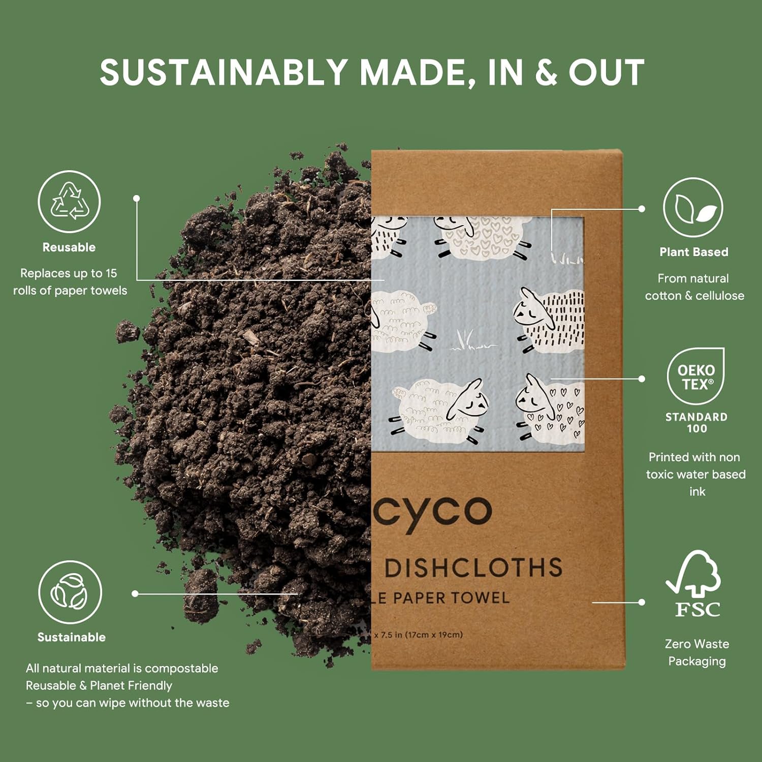 • Plant-Based & Biodegradable: Our 8” x 7” swedish dishcloth is 100% biodegradable, vegan, and free from harmful chemicals. Made from FSC certified cellulose and cotton fibers, it can decompose naturally in just 6-8 weeks, making it your best conscious choice for a greener lifestyle.