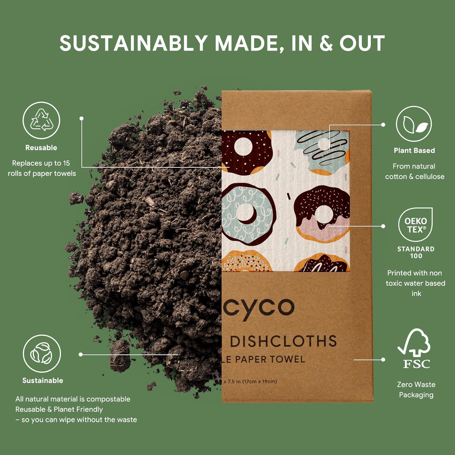 • Plant-Based & Biodegradable: Our 8” x 7” swedish dishcloth is 100% biodegradable, vegan, and free from harmful chemicals. Made from FSC certified cellulose and cotton fibers, it can decompose naturally in just 6-8 weeks, making it your best conscious choice for a greener lifestyle.