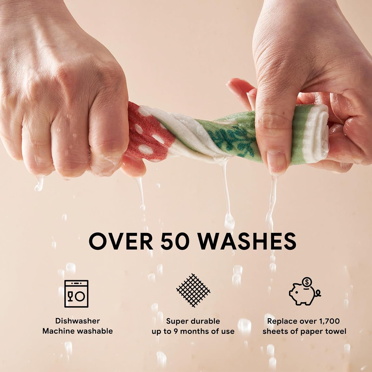 • Reusable & Save Money: Reuse our dishcloth is a no-brainer because of its ultra durability, it can replace 17 rolls of paper towels and effectively saves you up to $150 a year!