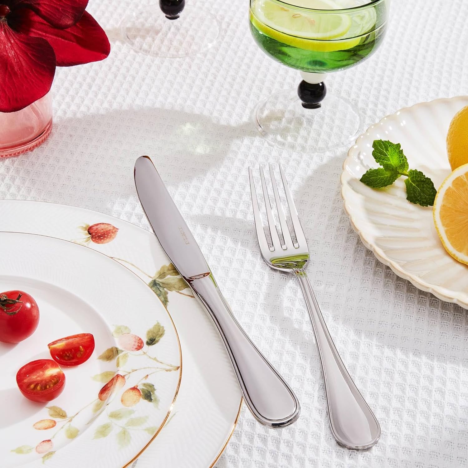 • 18/10 Finest material:The silverware is made of the highest quality 18/10 stainless steel, which has strong anti-corrosion and rust resistance compared to other materials. The solid structure of this material makes the flatware durable and will never bend, providing you with long-lasting service and beauty. Plus, its larger than average size gives it a more substantial feel in your hand