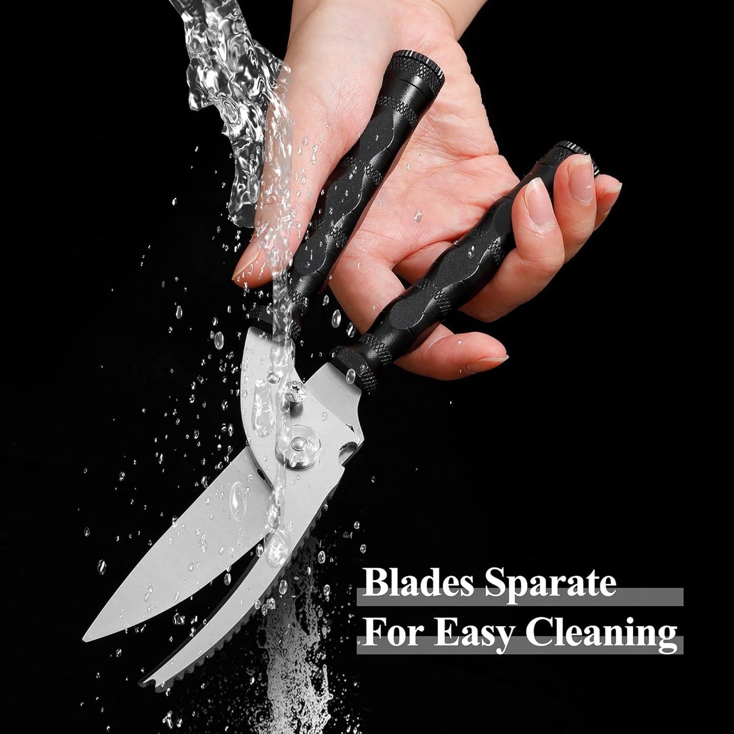 • 【Premium quality ultra-sharp Poultry shears】The high-quality kitchen poultry shears forged from premium stainless steel are sharper and thicker. Kitchen scissors are a professional heavy-duty kitchen scissors with a quick and easy detachable structure where one blade can be turned into a knife. The detachable blade also makes cleaning easier and does not leave a stain on the scissors.