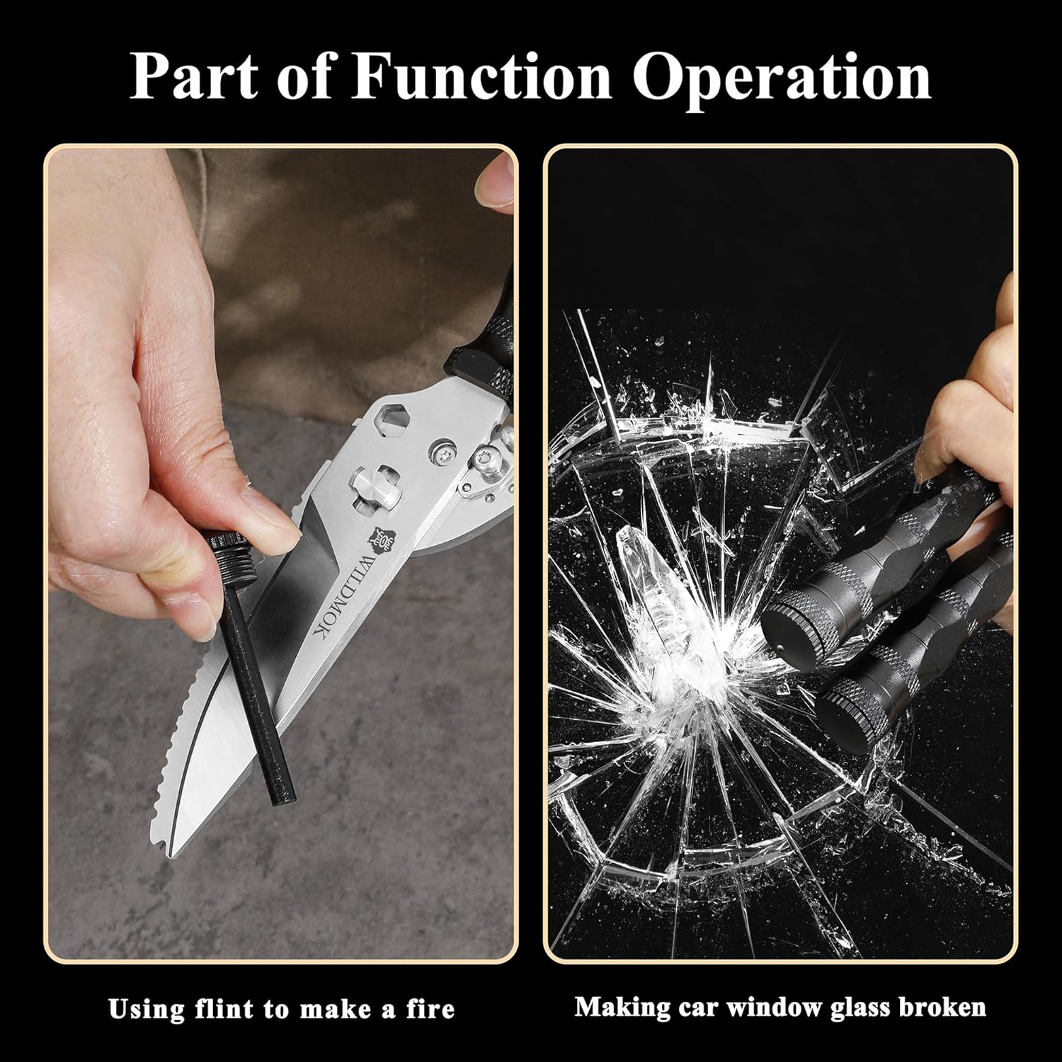 • 【Ergonomic bamboo shaped handle】The ergonomic handles of the kitchen shears makes it anti-slip and offer you a comfortable grip. the aluminum alloy material makes it very strong and durable, not easily deformed. The tail ends has built-in compass and flint, and a safety hammer blaster to increase the convenience of outdoor activities.