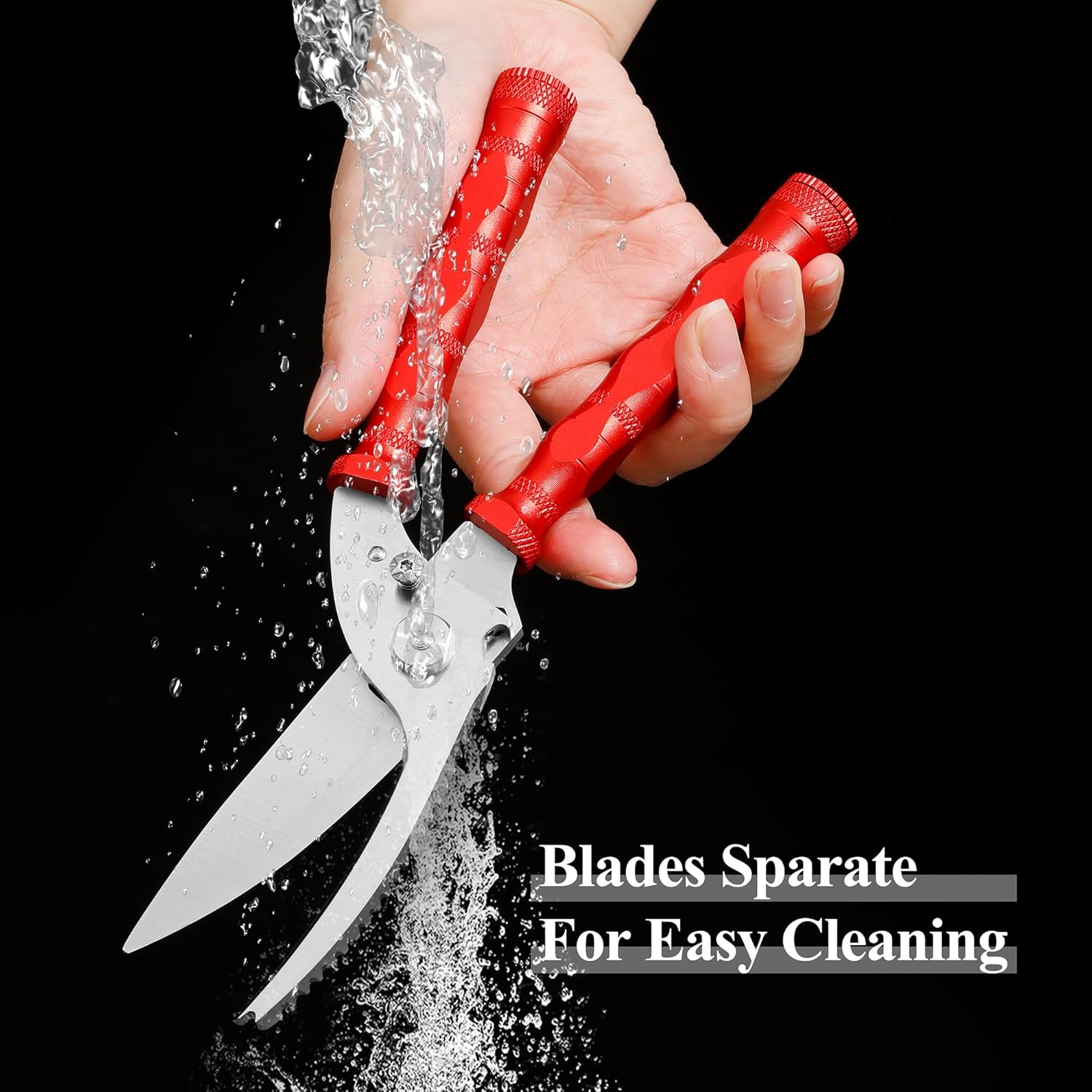 • 【Premium quality ultra-sharp Poultry shears】The high-quality kitchen poultry shears forged from premium stainless steel are sharper and thicker. Kitchen scissors are a professional heavy-duty kitchen scissors with a quick and easy detachable structure where one blade can be turned into a knife. The detachable blade also makes cleaning easier and does not leave a stain on the scissors.