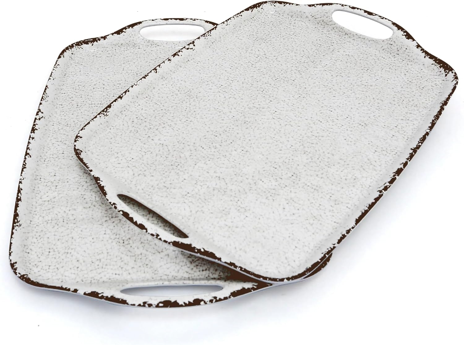 TP Serving Trays with Handles, 17 Inch Large Rectangular Melamine Serving Platter Set of 2, Rustic White