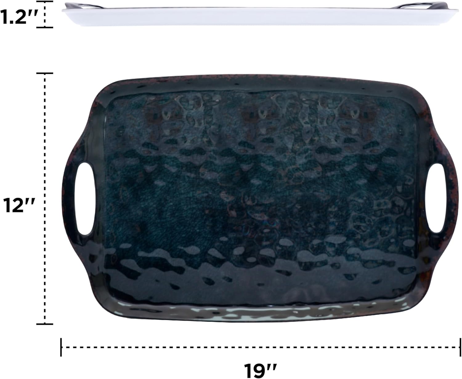 • Extra-large Serving Trays: This set of two large rectangular trays with handles (19" x 12") provides ample area to serve multiple dishes, bowls, or beverages–perfect for everyday meals, outdoor BBQs, or poolside gatherings, also great for RVs, travel trailers, picnics, camping, and casual entertaining.