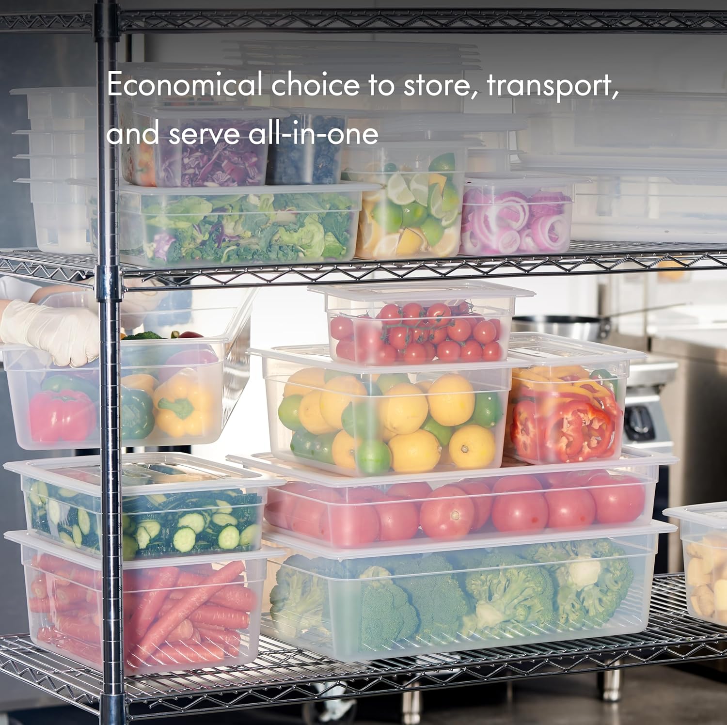 • Non-Stick & Chemical-Resistant Material - Translucent NSF Polypropylene with Smooth Interior – Resists Stubborn Stains, Harsh Cleaners & Food Adhesion. Easy Wipe-Clean Surface Saves Time, Reduces Waste, and Meets Strict Commercial Hygiene Standards.