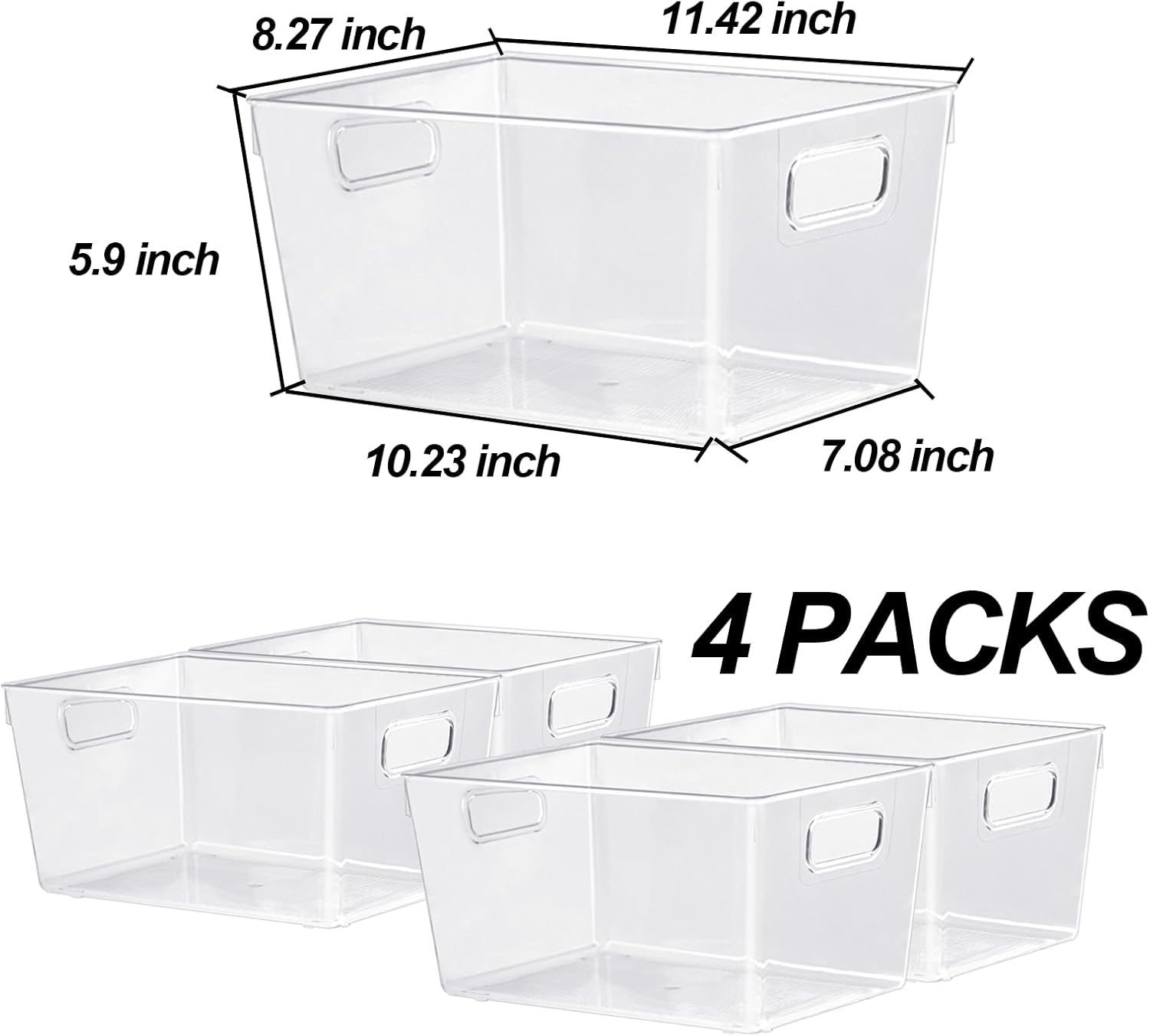 • 4 Pack Clear Plastic Storage Bin: The package includes 4 Large plastic storage bins, each measuring 11.4×8.2×5.9 inch/29×21×15cm.