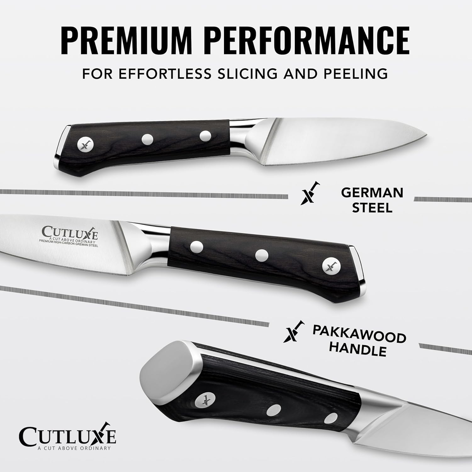 Cutluxe Paring Knife Set – 4" Fruit and 3" Peeling Knives – Small Knife with Razor Sharp Blade – High Carbon German Steel, Full Tang & Ergonomic Handle Design – Artisan Series