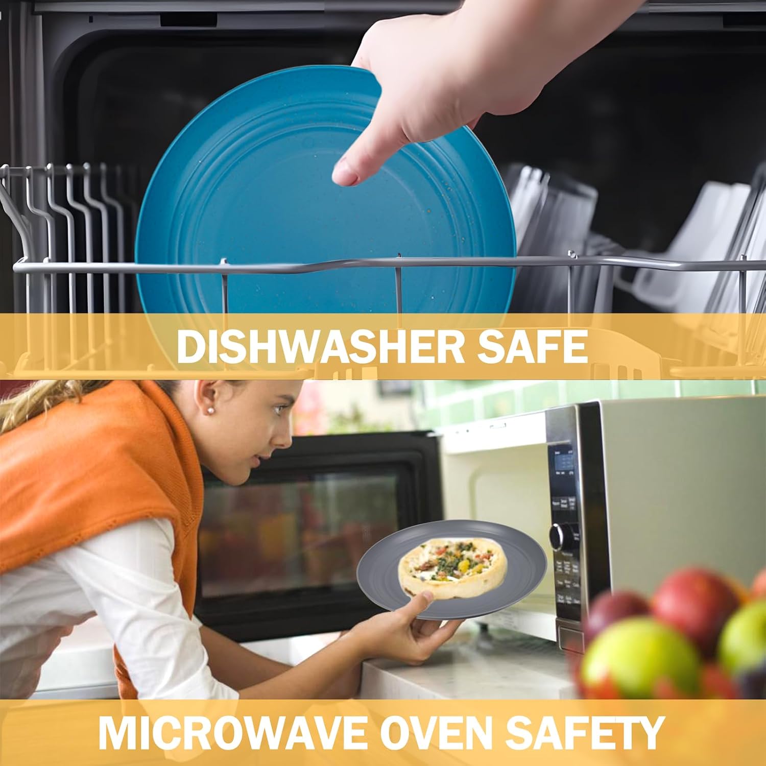 • Value Package: This wheat straw plastic plates set can be used by 4 people, and the plastic dishes set is a reliable choice for daily use and special occasions. The microwave plates and bowls sets includes 4 plates, 4 dessert plates, 4 cereal bowls, and 4 drinking cups.