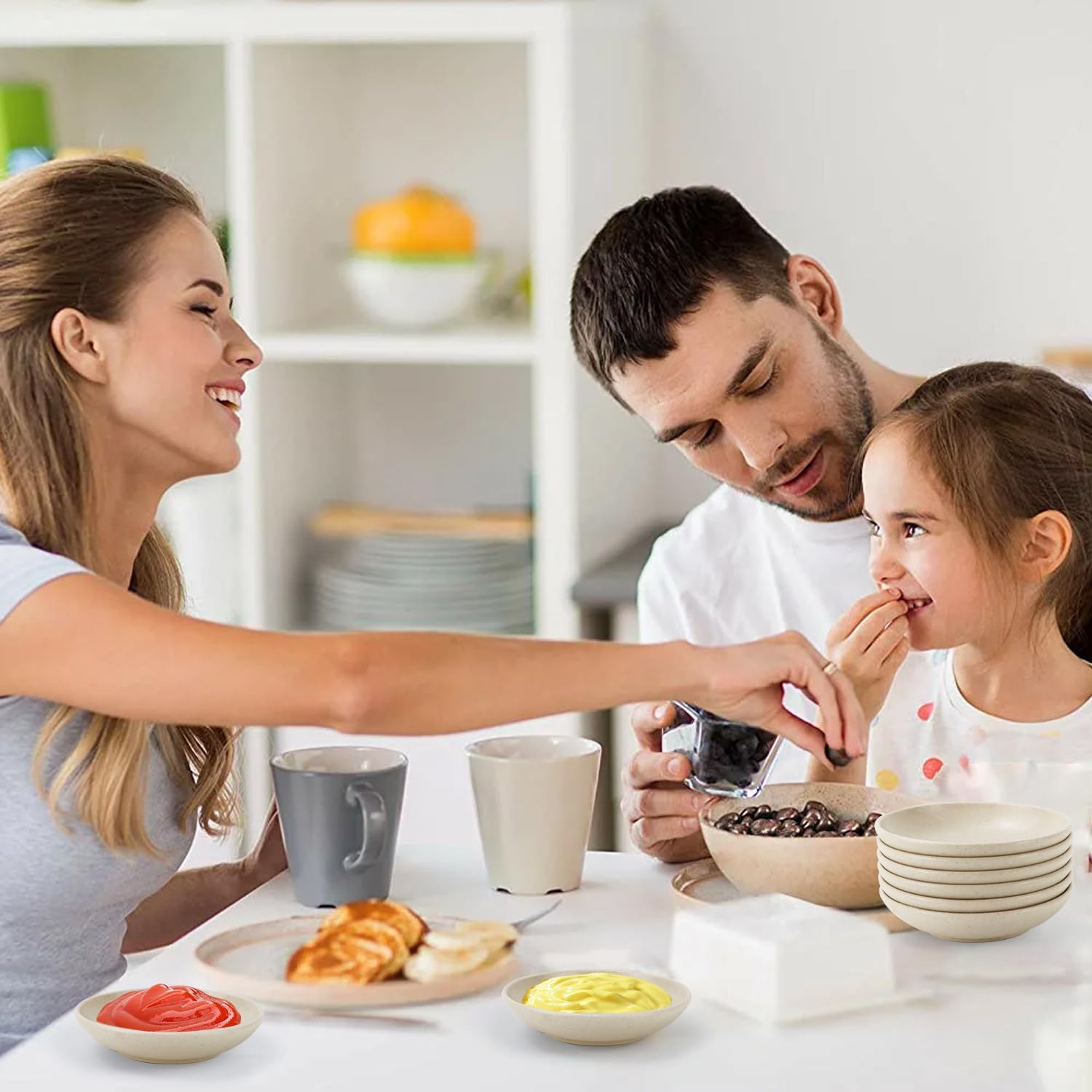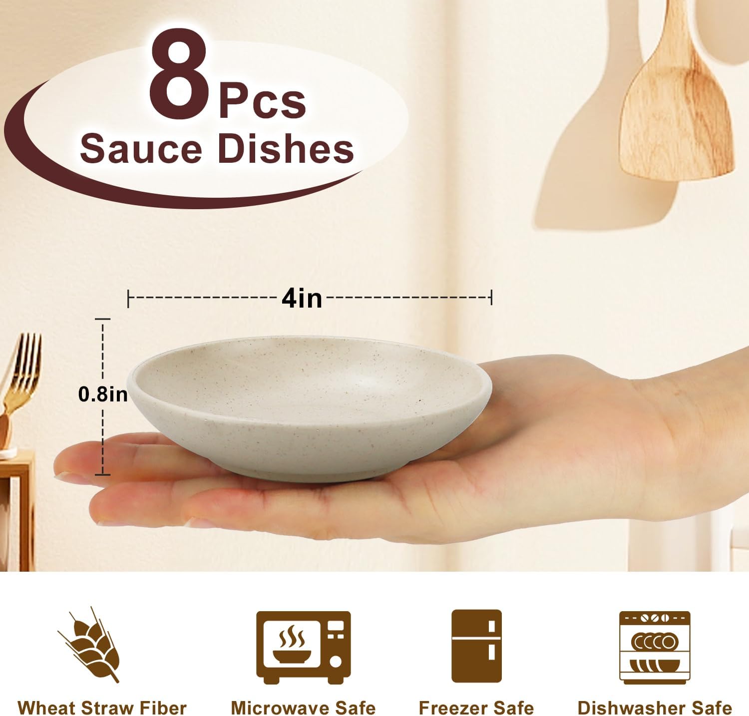 4 Inch Wheat Straw Plates 8 Pieces, Lightweight and Unbreakable Dipping Bowls, Small Soy Sauce Dishes, Small Serving Bowls for Side Dishes, Condiment, Appetizer (Beige)