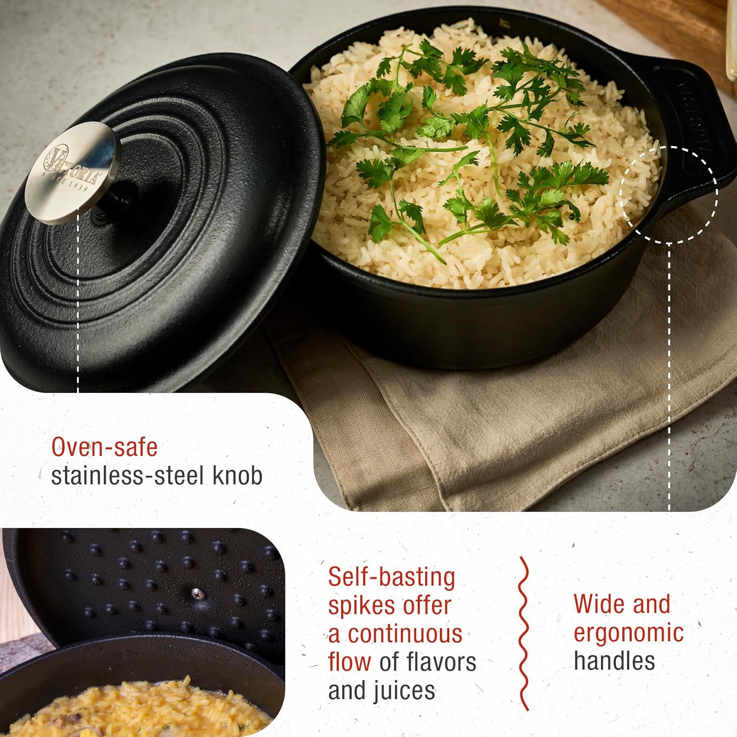 Victoria 2-Quart Cast Iron Dutch Oven with Lid and Dual Handles, Seasoned with Flaxseed Oil, Made in Colombia