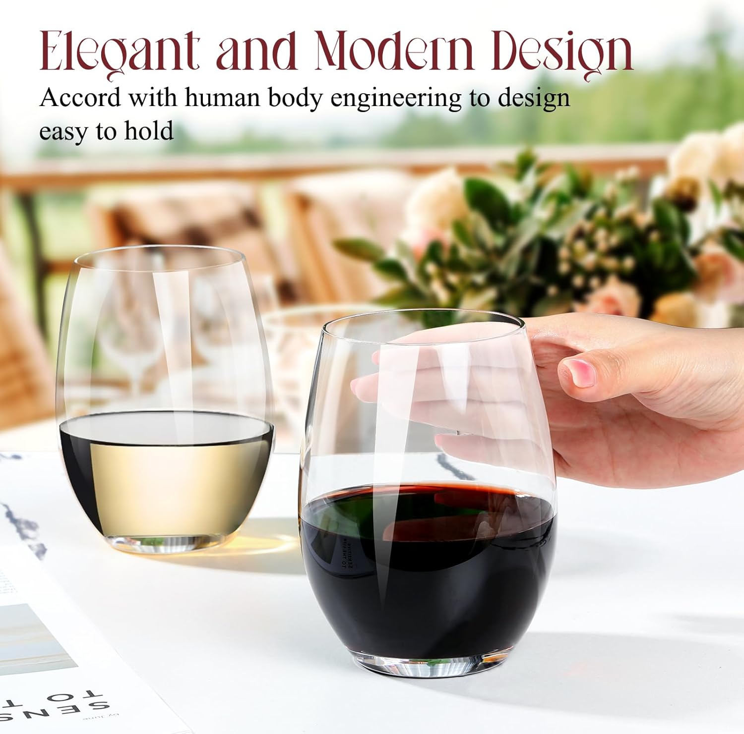 CHENGO Stemless Wine Glasses Set of 4 for Daily Use, 18oz Premium Stemless Red or White Wine Crystal Glass, No Stem Wine Glasses, Gifts for Wedding, Anniversary, Hosting, Birthday