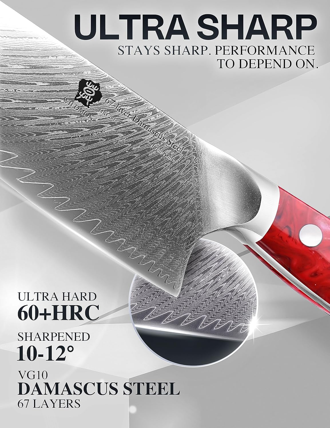 • 【Forged by 67-Layer sheets of steel, Long-Lasting Use】Besides on the knife core, there are still 66 layers of carbon steel that are forged on the blade. A total of 67 layers of steel structure greatly enhances the characteristics of corrosion resistance, rust prevention, and toughness, it would be a long-lasting use utility knife.