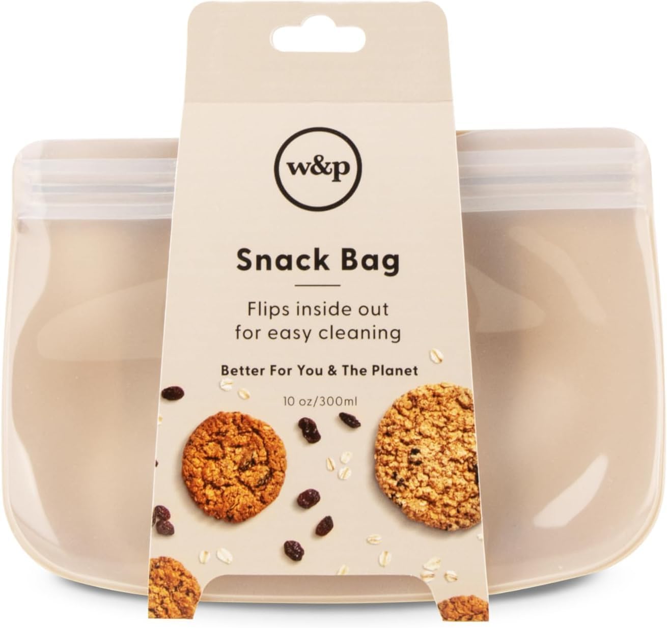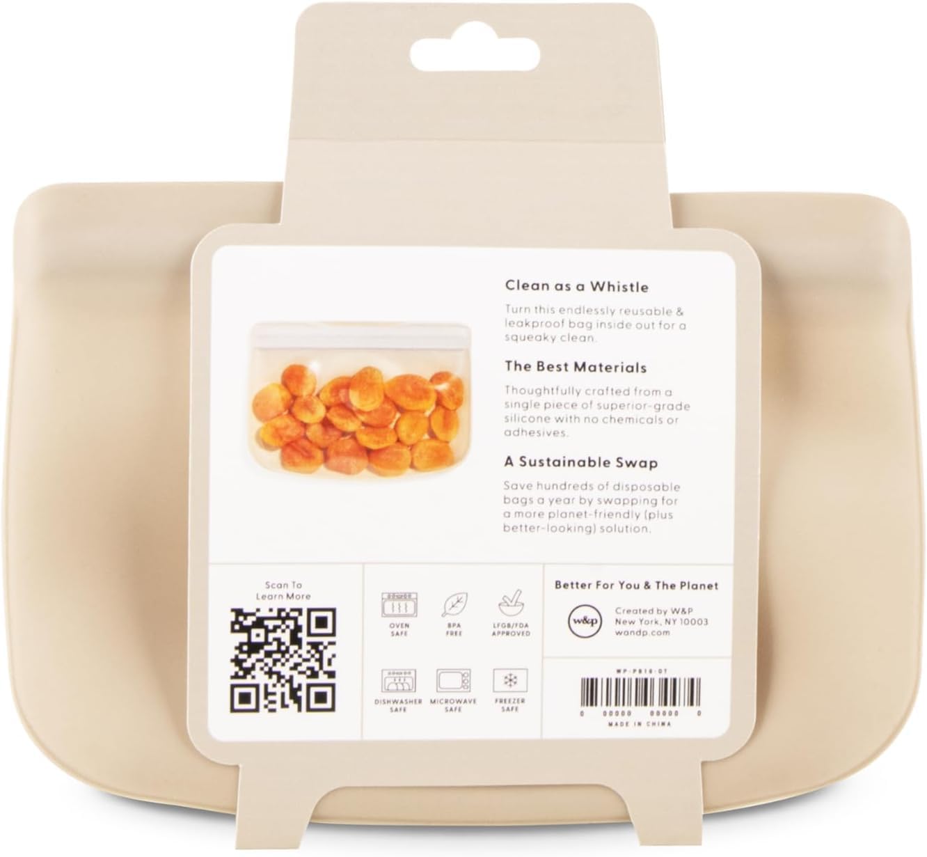 W&P Porter Silicone Reusable Storage Bag, Sandwich (10oz Flat), Oat, Food Storage Container, Microwave and Dishwasher Safe, Easy Cleaning