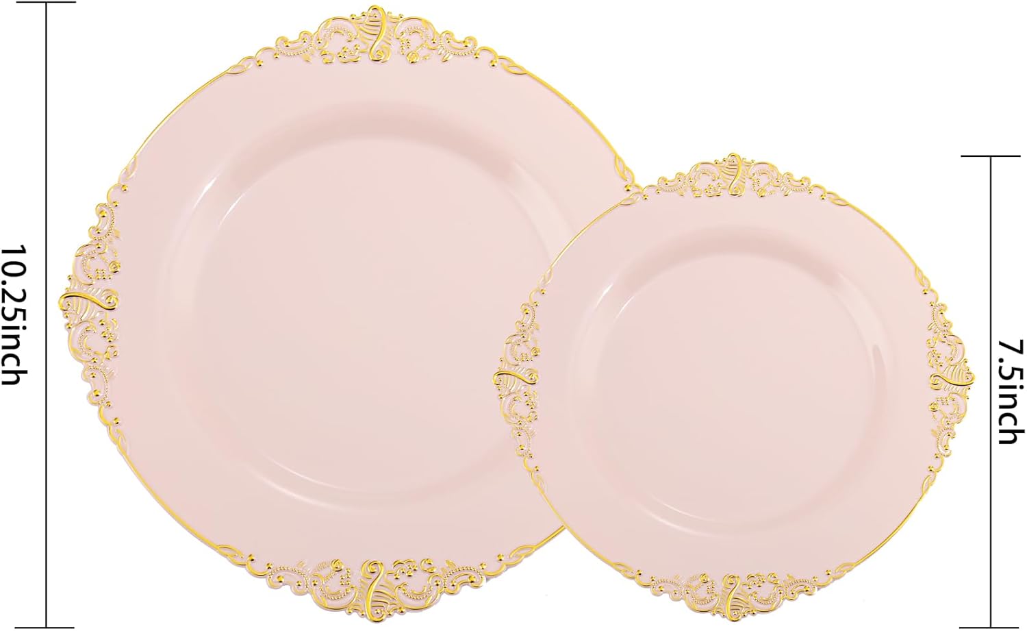 • Great Value: The pink and gold plates contains 51 plastic dinner plates 10.25inch and 51 disposable dessert plates 7.5inch, which are great value and can provide you with everything you need to host a memorable occasion.