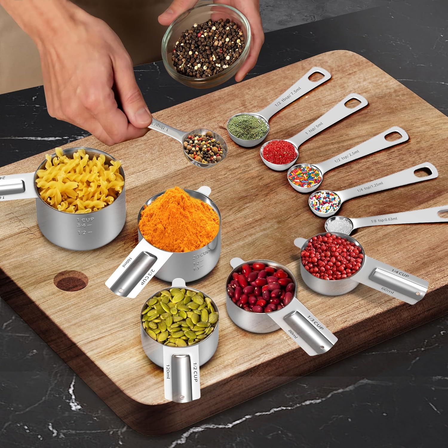 Measuring Cups and Spoons Set, Stainless Steel Measuring Cups Measuring Spoons with Easy to Read Markings, Ideal Kitchen Gadgets for Cooking & Baking, 11 Pack