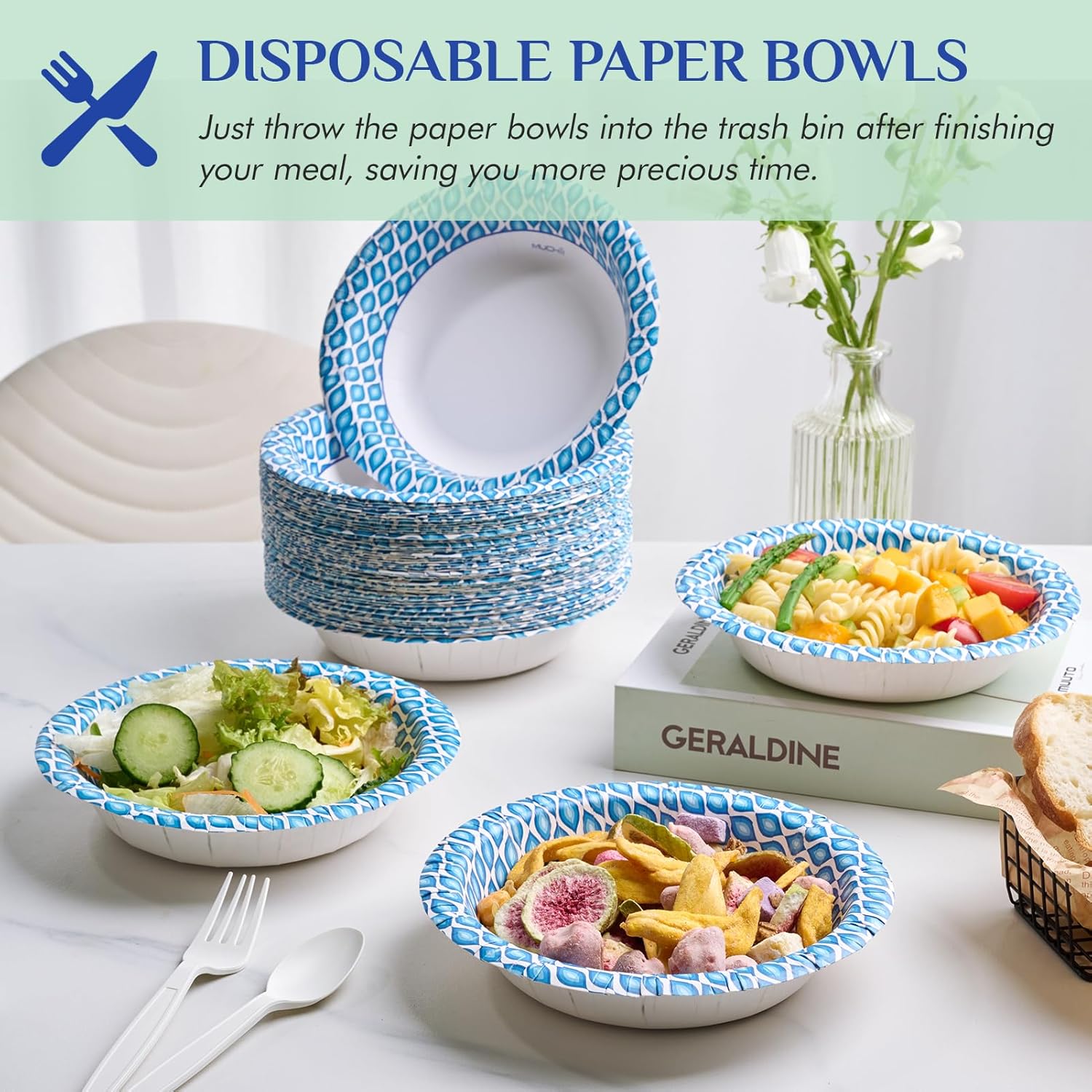 MUCHII 20 Oz Paper Bowls 180 Count Disposable Bowls, Printed Soak Proof Large Bowls for Breakfast, Lunch, and Dinner Meals
