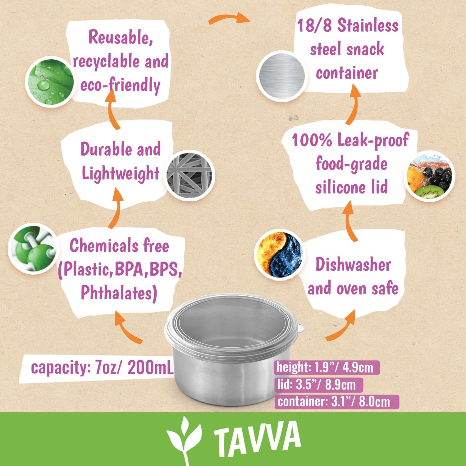 TAVVA 4 X 7oz Stainless Steel Containers with Lids - Leakproof w/Silicone Lids - BPA Free - Dishwasher & Freezer Safe - Portable & Reusable - Stainless Steel Storage Food Snack Containers