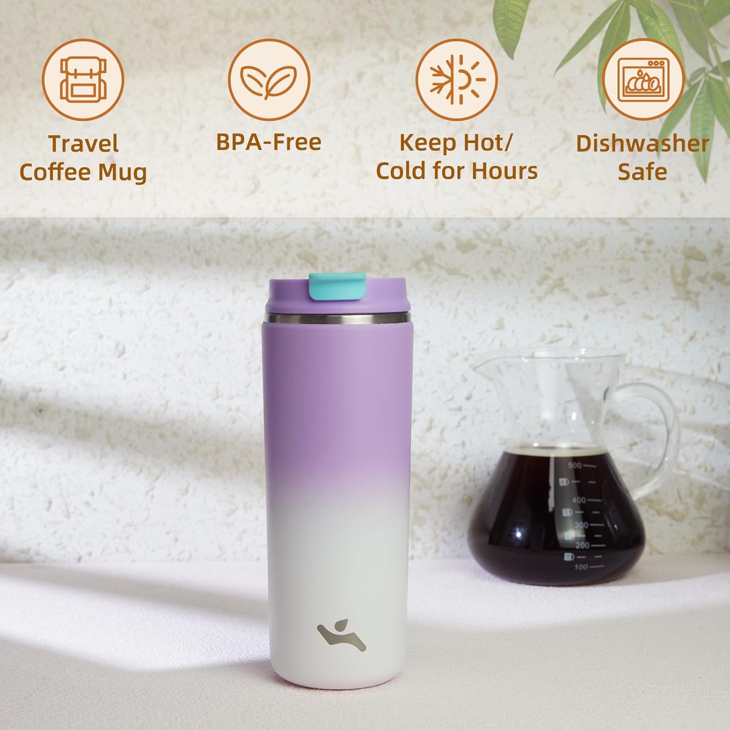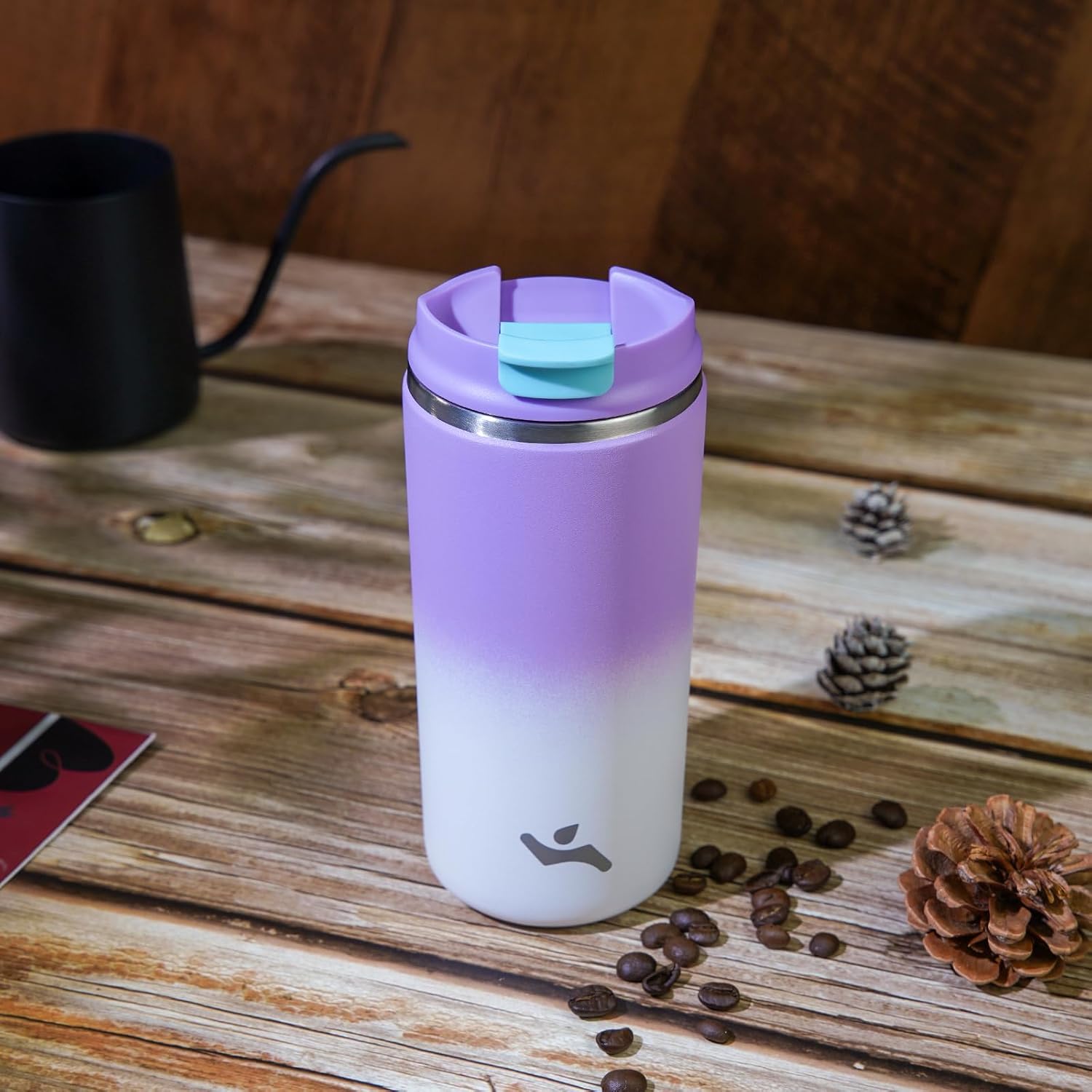 Tumbler with Lid, 16 oz Travel Coffee Mug Double Wall Vacuum Stainless Steel Thermal Metal Cup Insulated Water Bottle,PurpleWhite