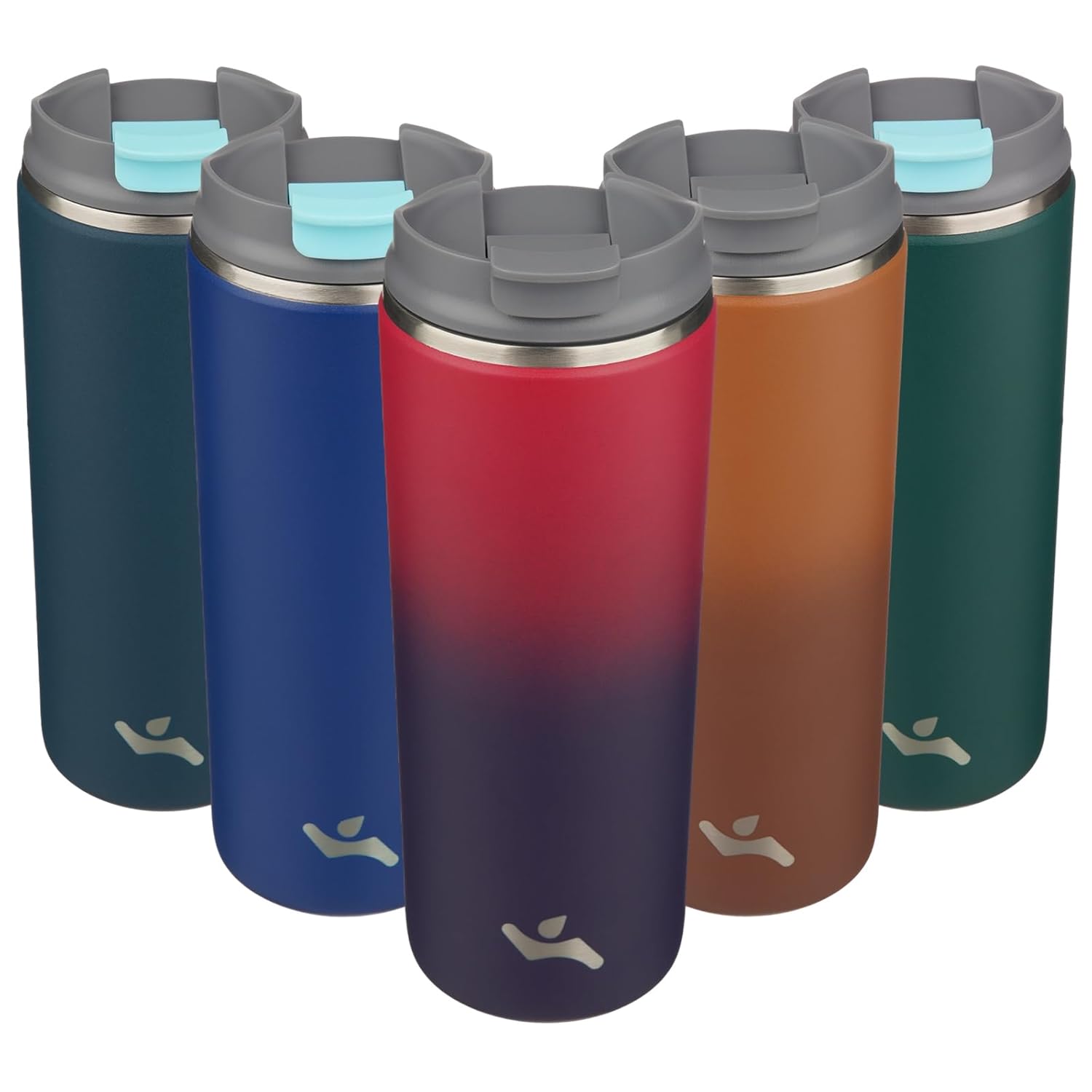 • The screw-on flip lid securely locks into place on the groove, ensuring a sealed closure once you've finished sipping. No risk of spills or leaks when you left the travel mug in your bag
