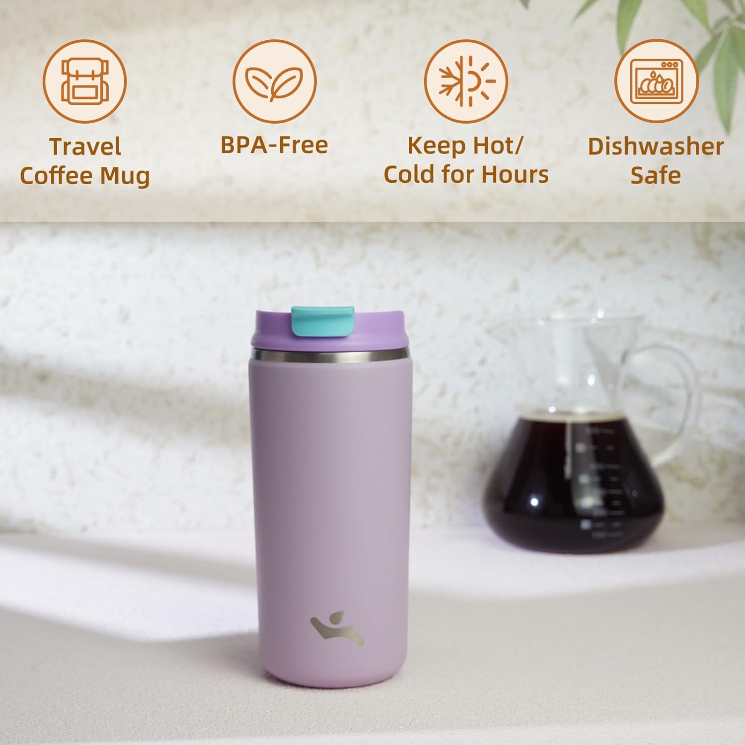 Tumbler with Lid, 12 oz Travel Coffee Mug Double Wall Vacuum Stainless Steel Thermal Metal Cup Insulated Water Bottle,Lavender