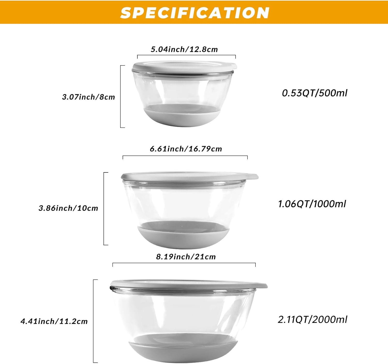 • 𝐒𝐭𝐲𝐥𝐢𝐬𝐡 𝐚𝐧𝐝 𝐅𝐮𝐧𝐜𝐭𝐢𝐨𝐧𝐚𝐥: Enhance your kitchen with these sleek and functional glass mixing bowls.
