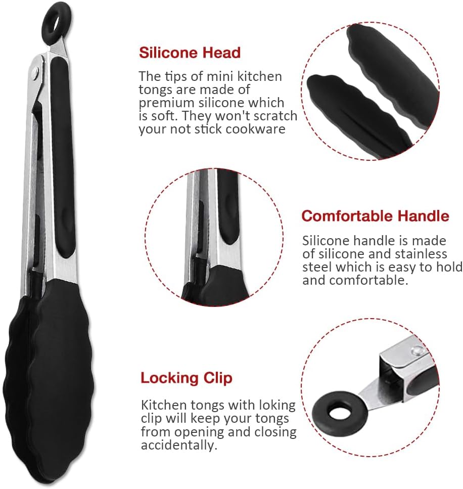 • Easy To Clean: Kitchen tongs are suitable for cooking, serving; Food won't stick to small cooking tongs, so to clean kitchen serving tongs only takes rinse with water or just take 7 inch silicone tongs in the dishwasher