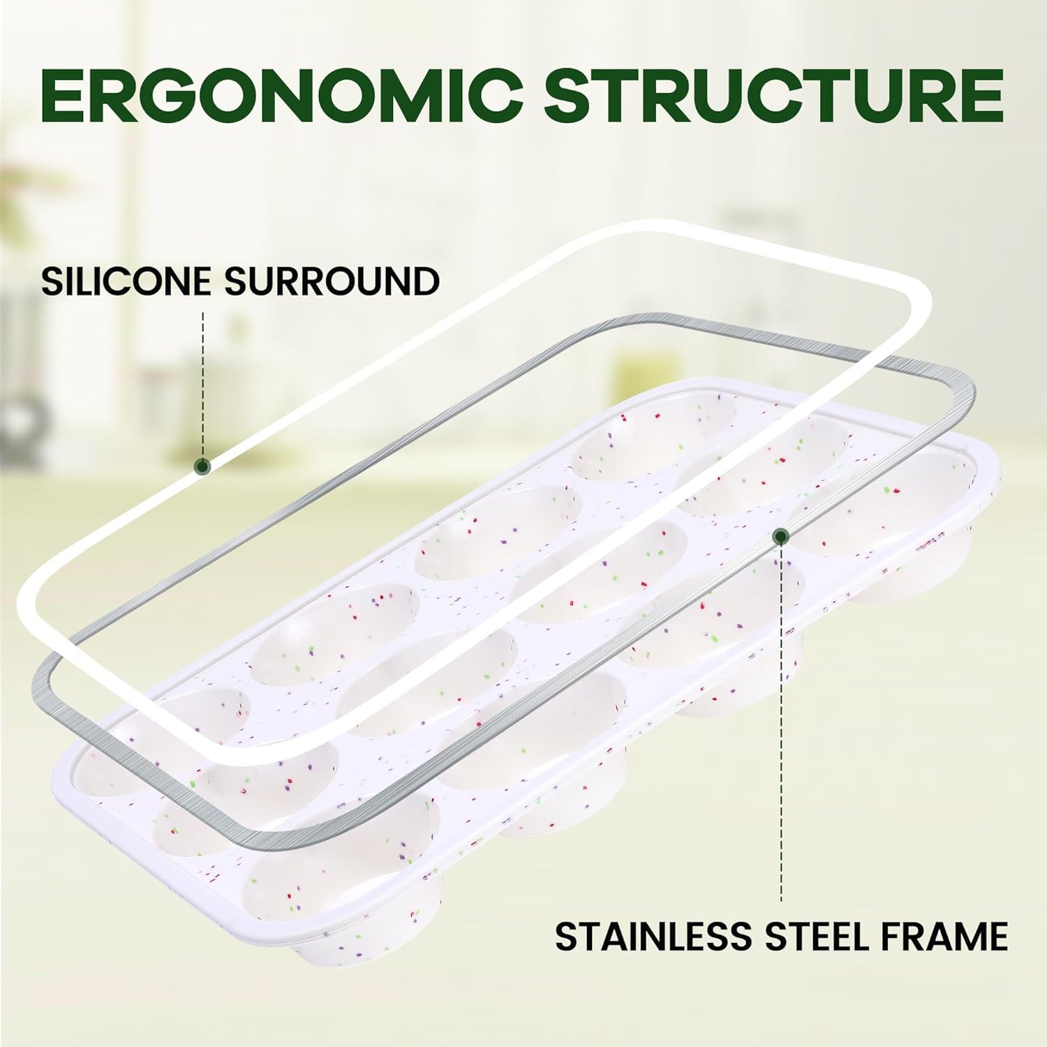 • Versatile Baking - Whether you're baking muffins, cupcakes, mini quiches, or other sweet treats, this cup cake pans for baking is up for the task. Its 12-cup capacity is perfect for preparing treats for family gatherings, parties, or meal prepping for the week.