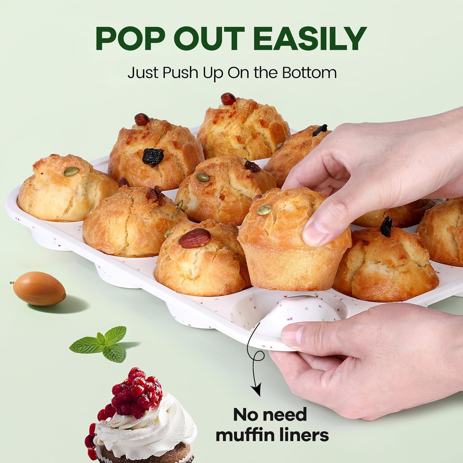 • Non-Stick & Easy to Release - The high-quality silicone material offers a non-stick surface, allowing for easy release of your baked goods without the need for greasing or cooking spray. Enjoy perfect muffins and cupcakes that pop right out.
